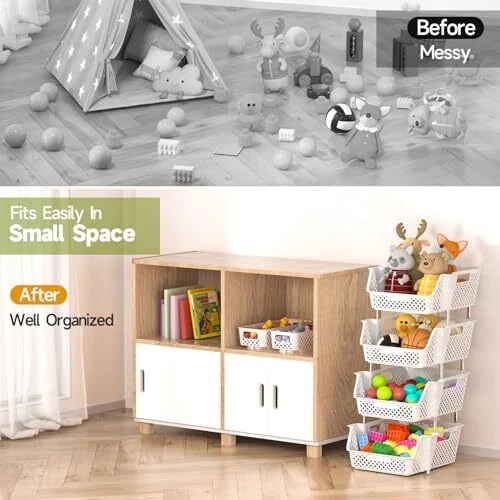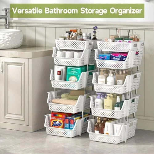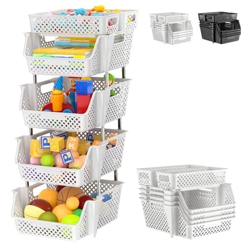 Return Policy Fast Delivery Trusted seller Plastic Stackable Storage Bins 4 Tier, Large Capacity Multi-Functional Storage Containers Shelves for Organizing Food, Closet, Kitchen, Office, Bathroom, Playroom, Kitchen and Pantry Organization Product Description Large Capacity: These 4-tier Upgraded stackable storage bins are convenient for storing your items such as t-shirts, shoes, clothes, toys, snacks, books, files, etc. It’s versatile enough to be used as a bathroom organizer for toiletries or skincare, a snack organizer, a pantry organizer for food, drink, and more, as well as a desk office organizer and kitchen spice organizer. The basket's open design makes it easy to view and retrieve items. Stackable Design: Customize your storage needs with our adjustable tier stackable storage containers. Stack 4, 3, or 2 layers easily to fit your preferences. It maximizes space savings by utilizing vertical space and the top storage baskets allow for more space usage. You can flexibly use our storage organizer for house organization and storage according to your needs. Multi-Functional: Our stackable bins are versatile and convenient, making them suitable for storing a wide range of items, such as toys, clothes, snacks, vegetables, fruit, onions, potatoes, and more. It can be used in various settings, including bedrooms, playrooms, storage rooms, kitchens, bathrooms, living rooms, offices, and other places. With a modern look, they can be integrated into various household styles perfectly Heavy Duty & Sturdy: The storage bins for shelves are made of high-quality plastic and are easy to clean with a damp cloth. The metal pole is made of waterproof and rust-proof stainless steel. These materials ensure durability and longevity, providing you with long-lasting storage solutions that can withstand daily wear and tear Perfect Size & : Stackable storage bins are the perfect size for pantry shelves, under-sink storage, toy storage, office, bathroom drawers, makeup, and craft organization. All the items are packed in a sturdy colorful box making it a great idea for a housewarming, Mother's Day, or a Christmas gift. We are dedicated to addressing any product issues, if you ever have any problem, just contact us for help or a free replacement Shipping Returns Payment Shipping Shipping is FREE to all addresses other than APO/PO boxes in the lower 48 states. All our stock ships from US-based warehouses. Shipped via USPS or UPS (depending on location and package weight) Unless stated otherwise, all orders will ship within 24-72 hours of your payment being processed. Check our feedback to see the great reviews of FAST shipping we offer. Returns Seller does not accept returns Payment We currently accept payment via eBay managed payments only. Once payment is cleared, we will dispatch your shipment within 1-3 business days. Please refer to the "Shipping" tab for more information regarding shipping speed to your destination.
