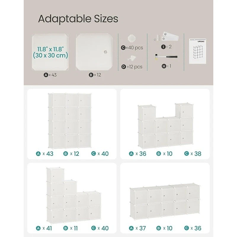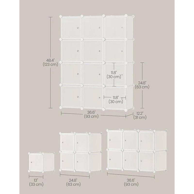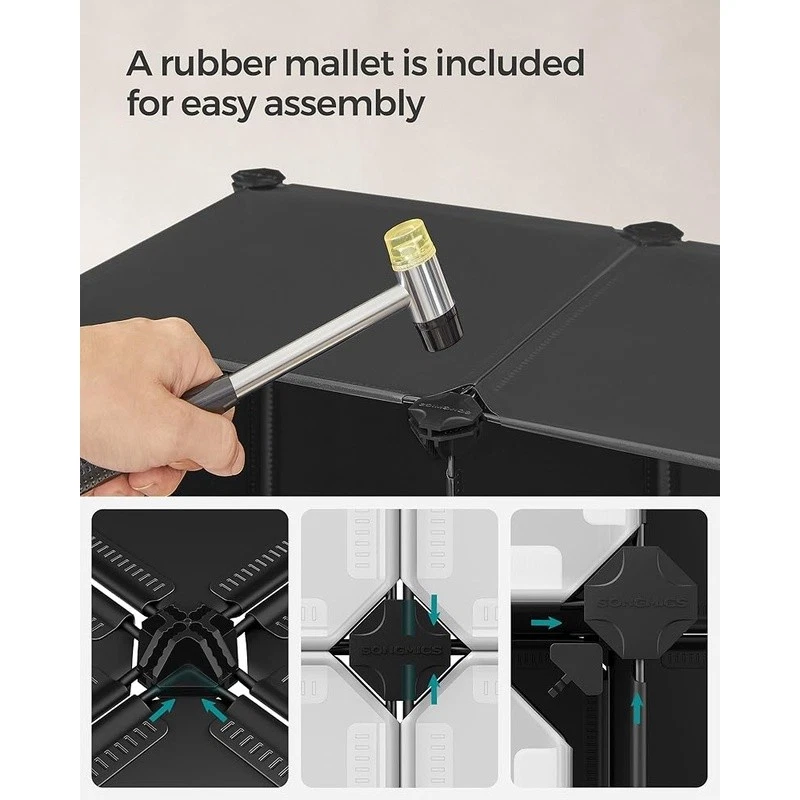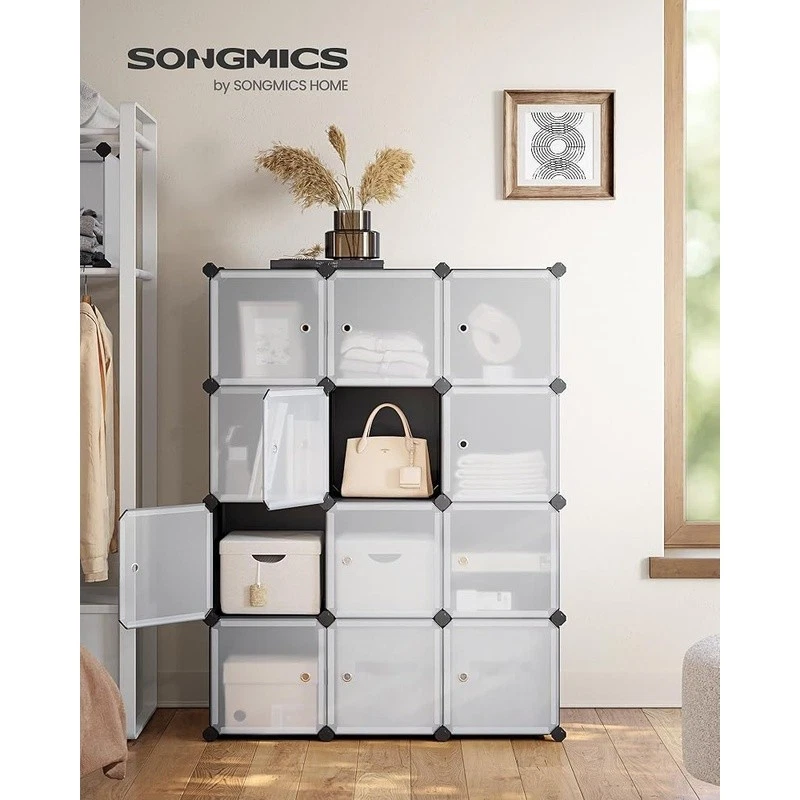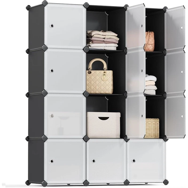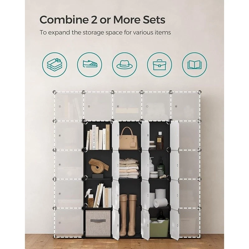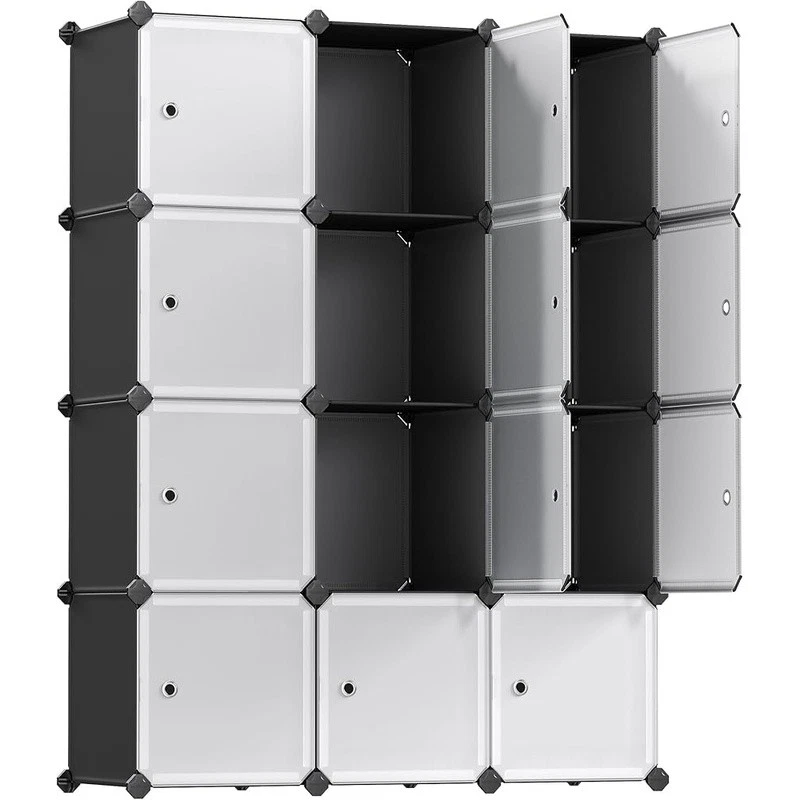 About this item Plastic 【GOOD NEWS FOR STORAGE】Organize your folded clothes? Store your bags? Keep your books or magazines? This plastic organizer can do all these jobs 【MORE STABLE THAN EVER】Connected by durable ABS plastic pieces and attached to the anti-tip kit, the robust metal frame panels offer great stability; each cube is sized at 11.8"L x 11.8"W x 11.8"H, making it much more stable than before 【DOOR WITH A TIGHT GRIP】Do your doors often bounce back open after you close them? That's very annoying. But don't worry, it will never happen to this storage organizer! It comes with an umbrella-shaped hook inside each cube so the doors can always be closed tightly 【ENDLESSLY EXPANDABLE】Well, at least in theory. Thanks to the clever plug-in system, you can build this cube rack in different shapes, with additional panels and connectors (not included), or simply omit some cubes—DIY at its best! 【EASY MAINTENANCE】The plastic panels are waterproof and dustproof, allowing you to easily clean them with a damp cloth › Brand: Color: Black + White Recommended Uses For Product: Files & Folders, Books Product Dimensions: 12.2"D x 36.6"W x 48.4"H Special Feature: Waterproof