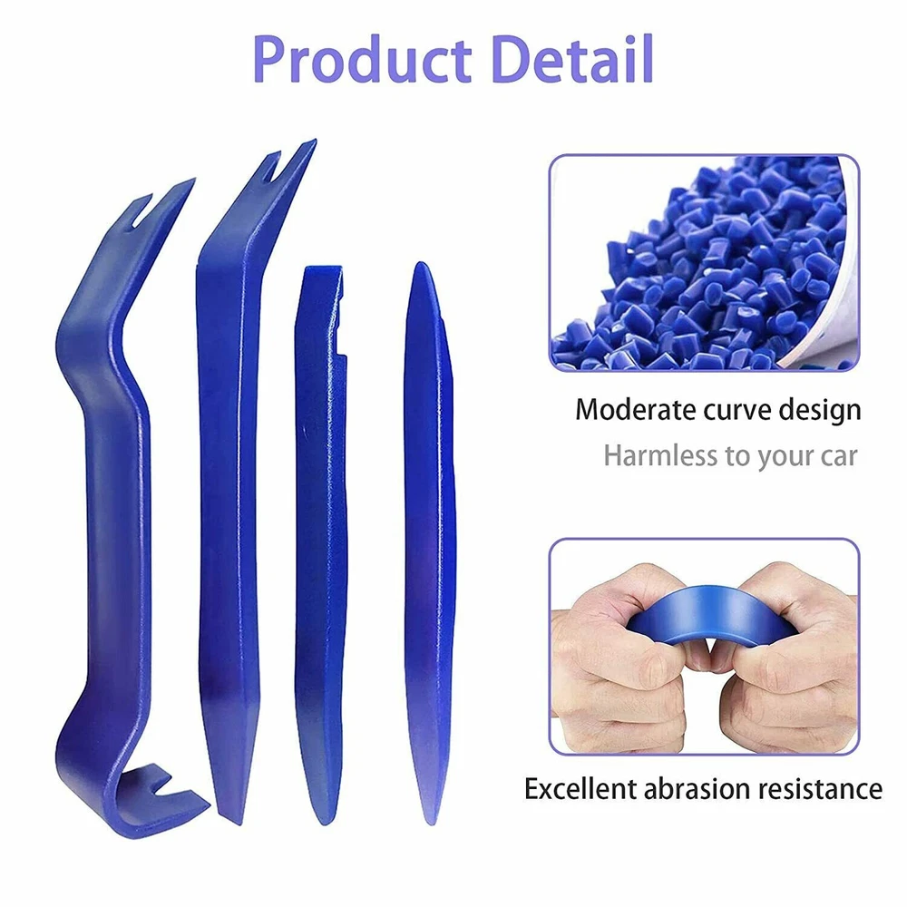Welcome to Kumbala eBay Store Description: - 100% brand new and high quality guaranteed - 1 set car panel removal tool (include 5pcs) - Easily and safely to remove radio panel, trim, molding, door panels, and dashboards - Great for automotive snap on trim panel and molding removal - Also works great for furniture repair soft and hard woods, antiques restorations,upholstery, leather work etc. - Reduce the concave and protruding scars left by using screw knife or other tools - It could reduce the abrasion possibility of car inner decorating -The tools are designed to fit any car model - High quality rugged durable plastic construction prevents marring - Work on interior and exterior trim, wide edge remover, narrow edge remover, pull-type remover, handle remover or upholstery clip remover - It has a high elasticity and elastic recovery rate Included in this package: - 5PCS PRY KIT Warranty & Customer Service : 30 days money back 60 days seller's guarantee, 24 Hours friendly customer service!