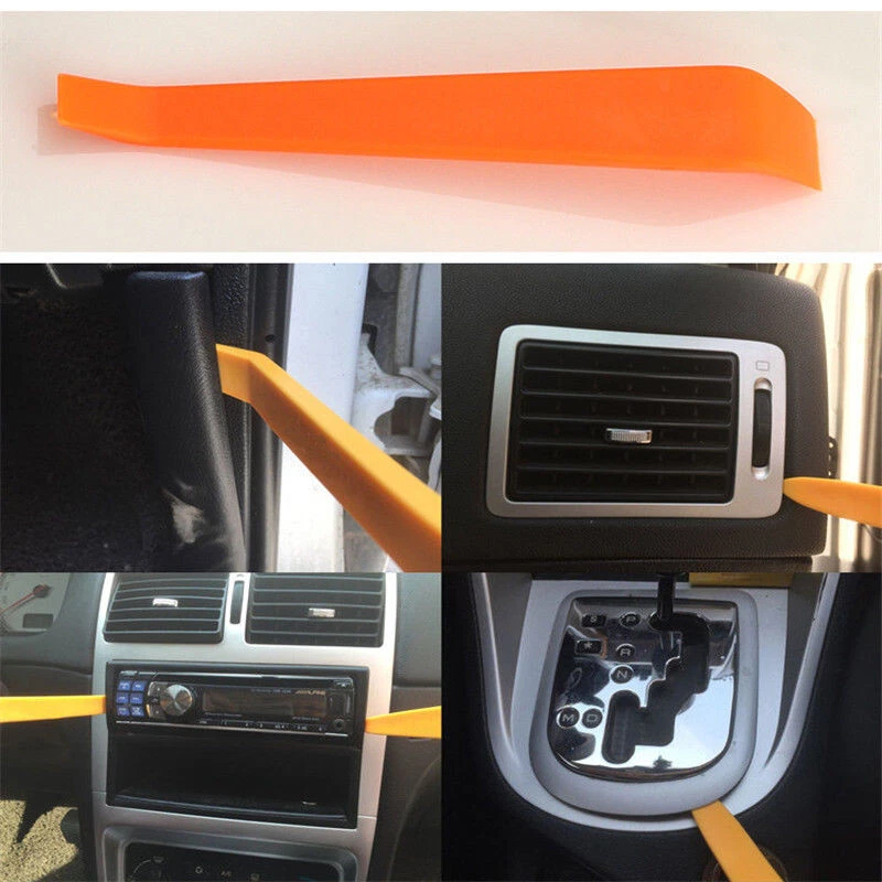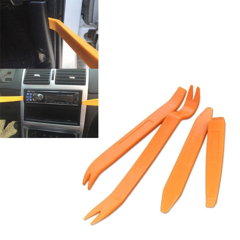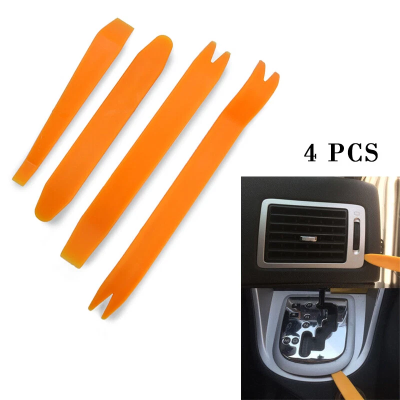 Car Removal Open Tools Auto Door Clip Panel Radio Trim Dash Audio Installer Features: 100% brand new and high quality. Quantity: a set car panel removal tool (include 4pcs) Useful pry tool for safely removing and installing car audio,exterior and interior trim,dash,door panel avoid scratching your car The tool could efficiently reduce the concave and protruding scars left by using the screw knife to remove It could reduce the abrasion possibility of inner car decorating The tools are designed to fit any car model Material: Plastic Note: Please operating after the car is stopped and completely flameout Do not let your children play with the tool Package included: 4 x Car Panel Removal Tools