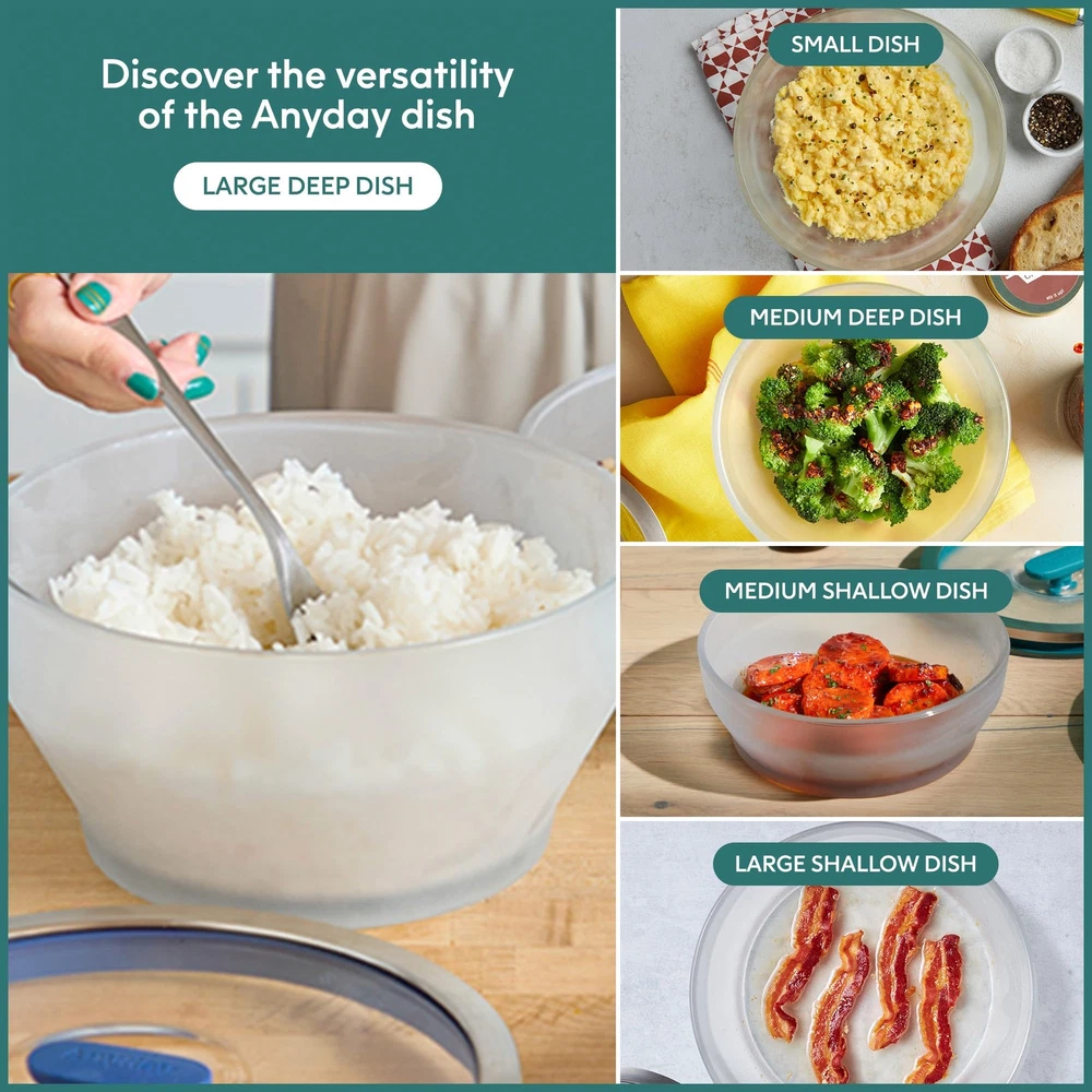 Introducing the Microwave Cookware 2-Piece Large Deep Dish—the ultimate solution for effortless cooking! Are you tired of cold spots in your reheated meals and mundane leftovers? This stylish yet practical glass meal prep container is designed to keep your food fresher for longer while ensuring even heating. Whether you need a microwave rice cooker, microwave egg cooker, microwave bacon cooker, microwave steamer for vegetables, sturdy soup bowls, pasta bowls, or freezer storage containers, glass containers with lids do it all! Crafted from premium frosted borosilicate glass, food containers with lids combine elegance and functionality. Our robust cooking and baking dishes seamlessly transition from microwave to table to dishwasher—making your life so much easier. This Large Deep Dish (8 cups, 7.9" x 4.2", 3 lbs) is perfect for crafting one-dish meals, exquisitely cooked grains, hearty soups, and more. What sets cookware apart? The silicone-rimmed glass lids trap steam for moist, flavor-packed meals while effectively ventilating to prevent pressure build-up. Enjoy healthier cooking—microwave-prepared meals retain more nutrients than those cooked via traditional methods according to research from esteemed institutions such as Harvard and Cornell. Enjoy delightful, nourishing dishes in record time with the help of our microwave-safe glass meal prep containers with lids. Designed for the modern kitchen, our versatile meal prep glass containers with lids are not only perfect for cooking but work wonderfully as elegant serving and food storage containers. Plus, they are dishwasher-safe! Spend less time washing dishes and more time savoring flavorful meals with your loved ones. Unlock a world of culinary creativity with clear food storage glass dishes. Whether making a tasty side dish, a delectable dessert, or a complete meal, this cookware is a kitchen essential. The Dish That Does It All: Made of sturdy frosted borosilicate glass, food storage containers with lids make it easy to enjoy moist, evenly cooked meals straight from the microwave without having to worry about warping or microplastics Silicone-Rimmed Glass Lids: Our splatter-blocking, airtight lids feature a steam-trapping silicone rim that keeps food moist and a silicone knob that vents excess steam; Press the knob down to neatly stack and store these glassware storage containers Hassle-Free Healthy Meals: Effortlessly transform raw ingredients into mouthwatering, nourishing meals in record time with this microwave-safe cookware set; Cooking homemade meals in the microwave is perfectly safe and preserves important nutrients Steam, Serve & Stack: Whether you need a vegetable steamer, glass mixing bowl, sturdy lunch container, or elegant serving bowl, our dishwasher-safe glass food storage dishes do it all; Cook, serve, neatly stack and store meals with minimal mess Large Deep Dish: This convenient lidded glass storage container perfectly caters to your cooking needs, whether steaming, oven roasting, reheating, serving, or storing food; Craft delicious one-dish meals, perfectly cooked rice, and hearty soups