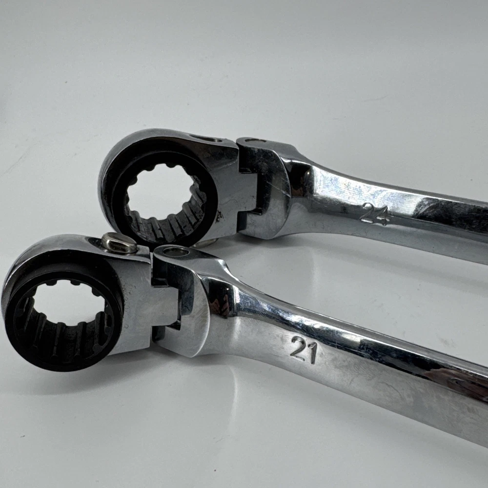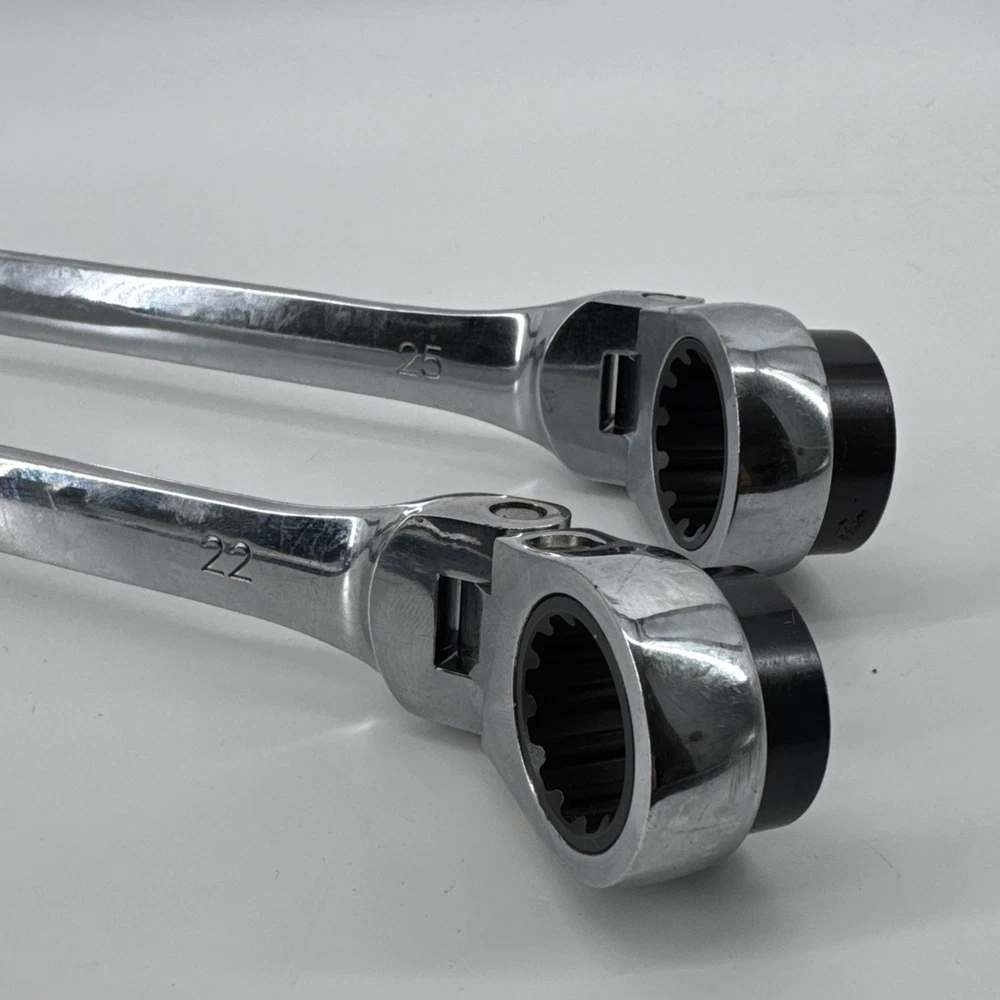 The Platinum 2pc XL Double Box MET Large Reversible Ratcheting Spline Wrenches 99652 is a high-quality set of hand tools designed for automotive use. This set includes two ratcheting box wrenches with sizes ranging from 21 to 25mm, perfect for metric measurements. The tools are durable and reliable, featuring the Platinum brand and a manufacturer part number of 99652. The reversible feature and ratcheting action make these wrenches efficient and convenient for various maintenance and repair tasks. Backed by a warranty, this set is a must-have for any automotive enthusiast or professional mechanic.
