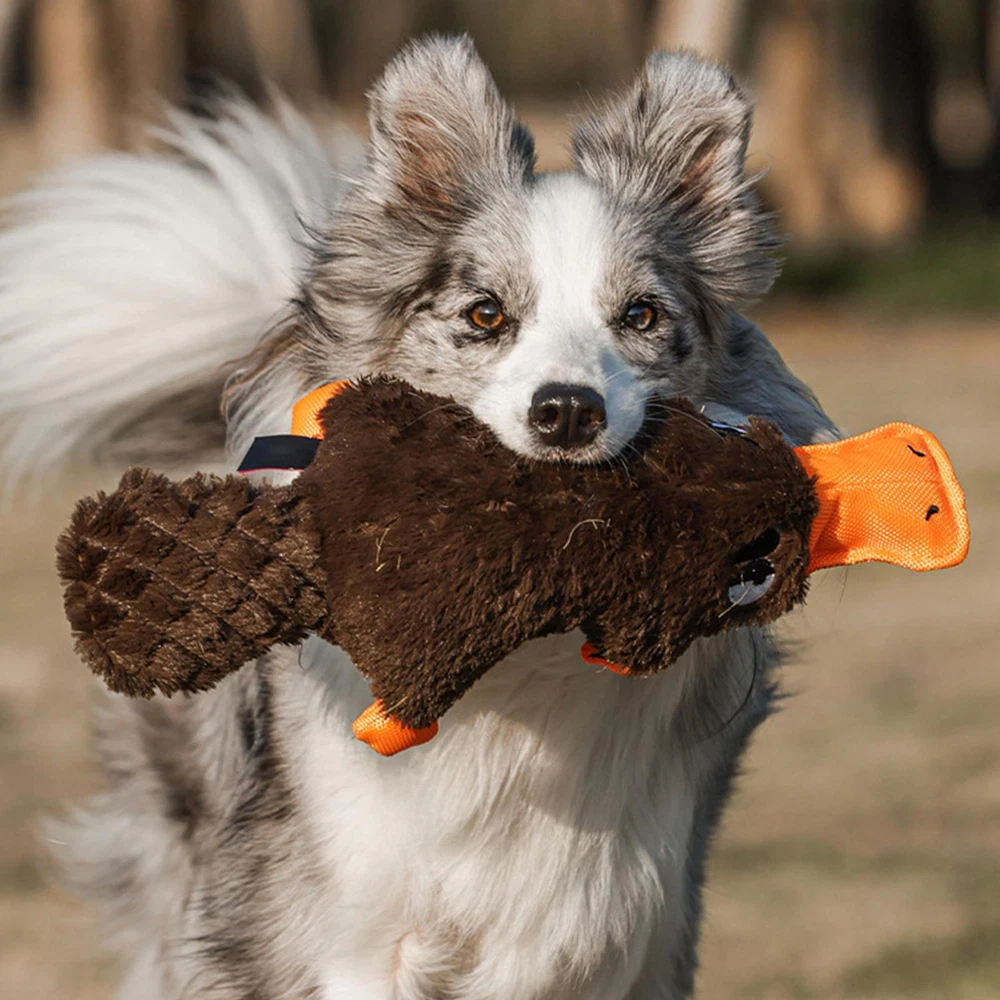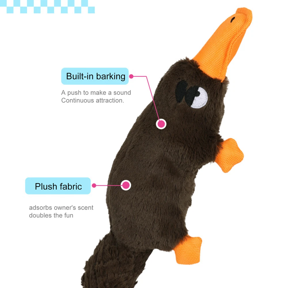 Bullet Points: Enhances Pet Interaction: Our dog plush toy is the perfect playmate that your furry friend needs. Featuring an attractive duck call, it grabs your pet's attention and prevents boredom and loneliness, while enhancing interaction and companionship with you. Its sturdy design is the cherry on top, strengthening bonds Absorbs Owner's Scent: Keep your pet entertained with a long-lasting sound emitting plush toy that absorbs your scent and effectively relax pet. With continuous sound attraction, your furry friend is sure to have a blast Increases Pet Excitement: With its original and cute design, this plush toy not only encourages playful biting but also increases pet excitement through multiple play methods, including tug-of-war compatibility Sturdy Quality: Our plush dog toys are designed with durability in mind, thanks to its high-quality workmanship and long-lasting intact design. Resisting heavy biting, this toy ensures great performance for your furry friend Brings More Fun: Your furry friend will love our plush toys for dogs that are perfect for snuggles with their cute and engaging design. This highly praised pet accessory enhances joyful playtime and is loved by owners Our dog squeaky toy is the ultimate choice for pet owners seeking enhanced pet interaction and increased pet excitement. Made with soft plush fabric and a long-lasting intact design, this toy has received high praise from pet owners. Give your furry friend the gift of playtime with this highly praised toy. Specification: Name: Dog Squeaky Toys Product weight: about 120g Product size: about 38x18x7.5cm/14.96x7.09x2.95 inches Product material: plush + Oxford cloth Packing List: 1 x Dog Squeaky Toys Notes: 1. Due to the different monitor and light effects, the actual color of the item might be slightly different from the color which is showed in the pictures. 2. Please forgive a slight measuring deviation due to manual measurement.