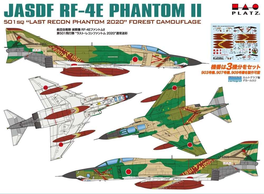 Platz 1/144 JASDF Recon Aircraft RF-4E Phantom II 501st Sq Last 2020 Description Thank you for visiting the page! Ships with careful packing from Japan. Description Product Description This kit is a 1/144 scale version of the RF-4E Phantom II, which is equipped with the standard camouflage of the Air Self-Defense Force 501 Squadron, which will be operational in FY2019. Above all, the aircraft with special markings that appeared on the final tour that visited events such as air festivals around the country are modeled. The Phantom II has a delta wing, and the shape of the nose of the Reconnaissance Phantom, which is commonly known as the Reconnaissance Aircraft, is reproduced with a sense of realism including the panel line. Of course, the marking is a special marking of the aircraft that participated in the final tour. Sharkteeth on the nose, marking the band with the image of the film on the body, and illustrations of the official F-4 phantom character drawn in front of the air intake are reproduced. The finish is about 130mm in length, and it is easy to assemble with a configuration with a reduced number of parts. The collection is fun with the affordable size. The final tour painting machine of the RF-4E (PF-29) with the same scale is also modeled. ※This product is a plastic model that needs to be assembled and painted. ※Adhesives, tools, paints, etc. are required for assembly and painting. ※"Plastic model" is a registered trademark owned by Japan Plastic Model Industrial Cooperative. Safety Warning Not Applicable Plastic model requiring assembly painting. Adhesives, tools, paints, etc. are separately required. 1/144 scale unpainted plastic assembly kit Completed size: Approx. 130mm Model the Phantom II, a tactical reconnaissance machine that the Air Self-Defense Force has been using for many years The marking contains the classic green camouflage-covered fuselage Special marking machine number is available for 3 machines 903, 907 and 909 Special marking with a shark mouse on the nose and a band with a film on the fuselage is available in decals Shipping FedEx, Japan Post, USPS (Not available for selection) Terms of Sale *As a rule, tracking numbers are uploaded within 10 business days of purchase. *In principle, the package will be delivered within 3 weeks after the tracking number is uploaded, but delays may occur depending on international conditions. Please contact your local post office for details. International Buyers - Please Note: Import duties, taxes, and charges are not included in the item price or shipping cost. These charges are the buyer's responsibility. Please check with your country's customs office to determine what these additional costs will be prior to bidding or buying.