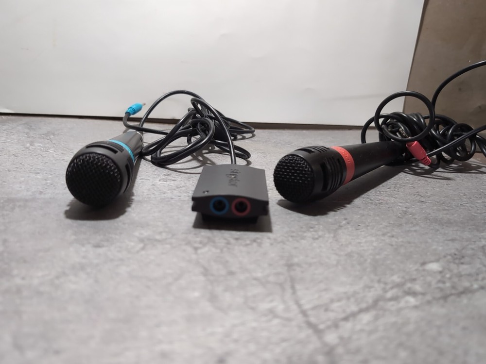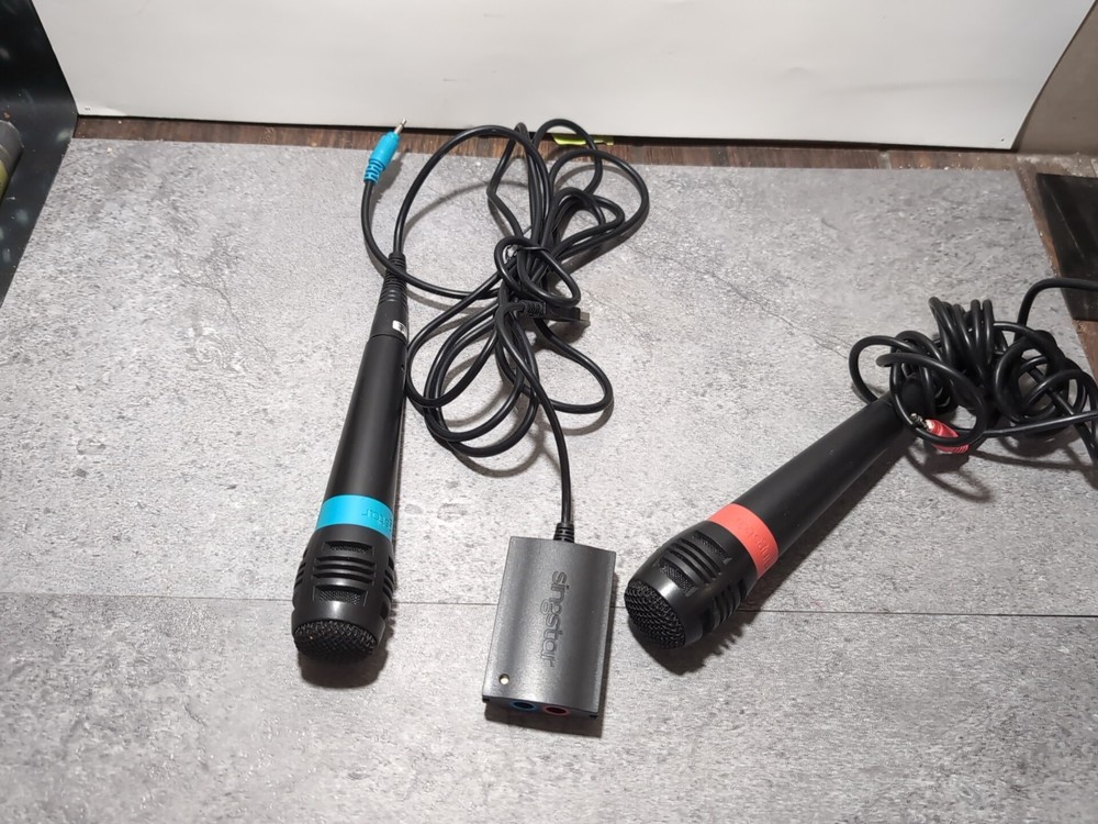 The PlayStation 2 Sing Star Microphones 2 Pack in blue and red metal is a set of two microphones specifically designed for the Sony PlayStation 2 console. These microphones are compatible with the PS2 and can also be used with a PS2 with a USB adapter. The game being played on the PS2, SingStar, falls under the genres of simulation, karaoke, and music & dance, making it a fun and interactive experience for players of all ages. With the E-Everyone rating, this product is suitable for players of all ages to enjoy singing along to their favorite songs.