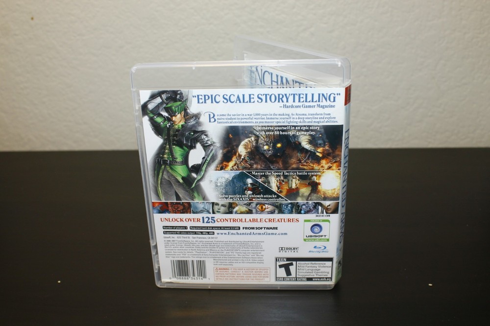 PlayStation 3 Enchanted Arms Game CIB Mint Disc FromSoftware Clean & Tested Game disc is in mint condition. Manual is in mint condition. The artwork looks great and the case has a like new finish. Overall this game was well taken care of.