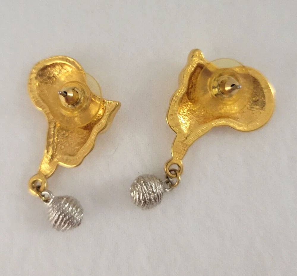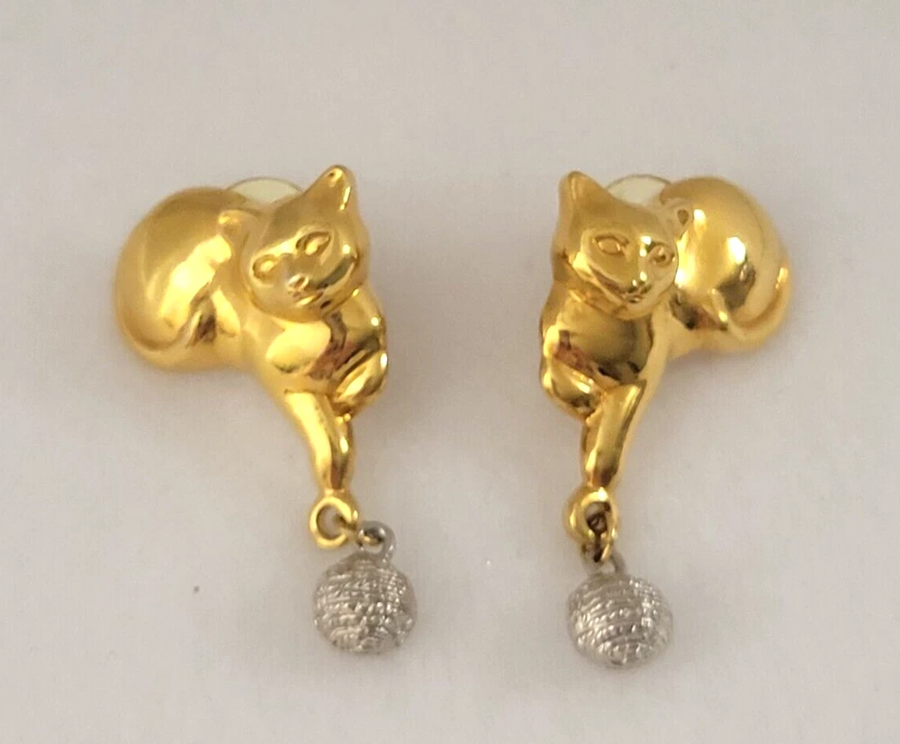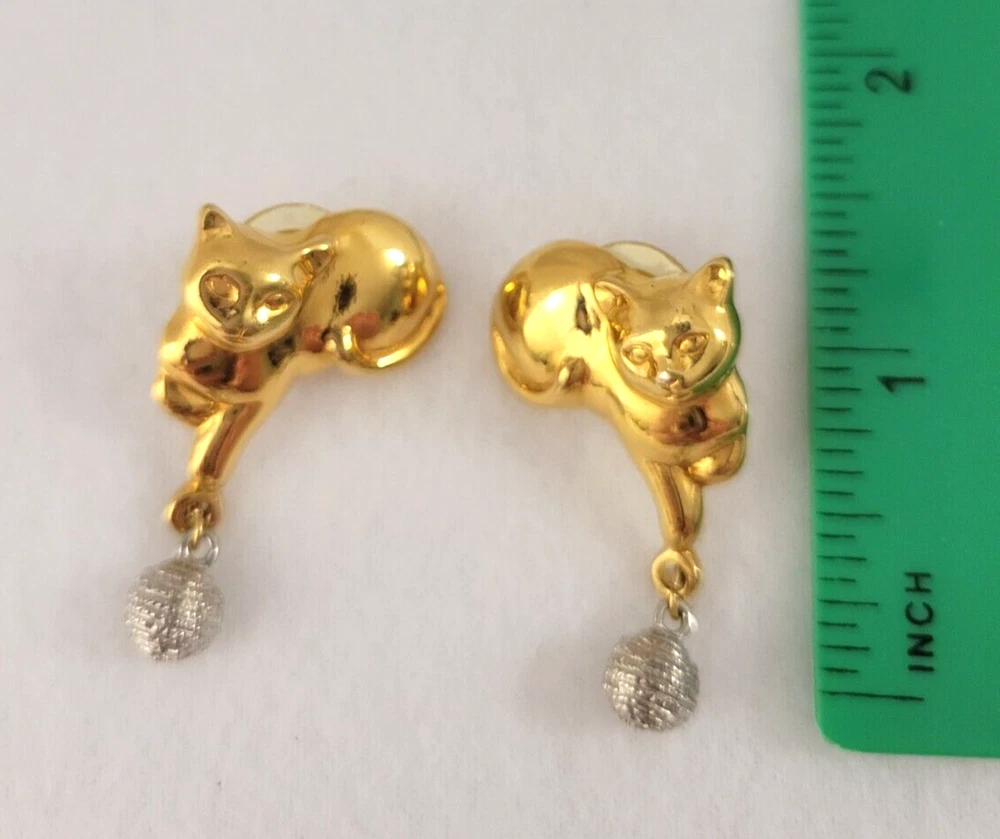 Playful Cat & Yarn Shaped Gold & Silver Tone Post Earrings, Costume, 1.5” Each item is carefully packaged to prevent any damage and is shipped immediately with tracking.