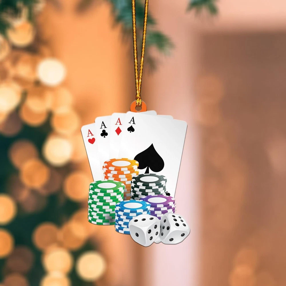Playing Card and Casino Tokens Christmas Hanging Ornament Casino Games Ornament