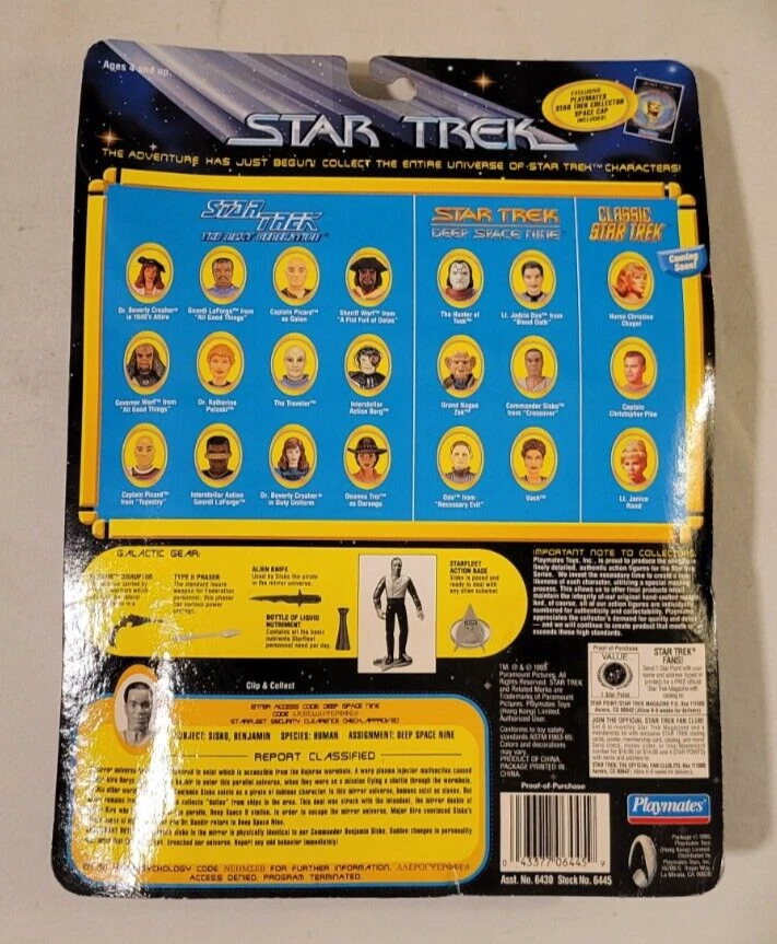 This Playmates Toys Star Trek Deep Space Nine action figure features the iconic character of Commander Benjamin Sisko. The vintage item was manufactured in 1995 and is an original, licensed reproduction. It is recommended for children aged 4+ and has a height of 4.5 inches. The packaging is original and unopened, making it a perfect addition to any Star Trek collection. This item is not AFA graded and has not been modified. It is part of the Deep Space Nine series and is a must-have for any fan of the franchise.