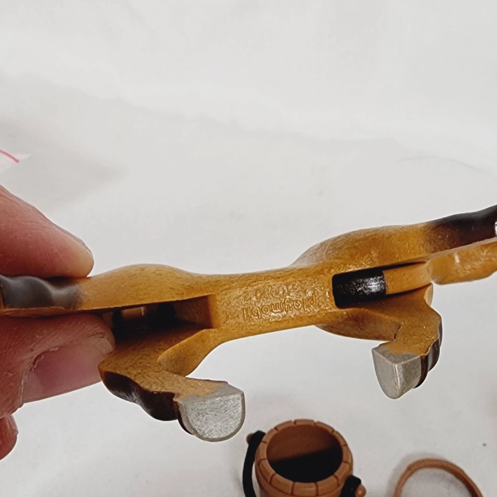 Playmobil 1988 Vintage Farm Animal Set. Not sure what set(s) they're all originally from, so I arranged it into a fun play set on its own. Can also be used as add-ons to your existing sets! Includes all pieces shown. Includes Palomino Horse, Brown Spotted Cow with Horns, Sheep (this one isn't marked and may not be actual Playmobil brand, joints are looser), Chick, and Small Accessories (Milk Bucket, "Wooden" Bucket, 2 Hay Bundles, Rope, Bag, and Sign. All in gently played with condition, nothing damaged or broken besides one horn tip on the cow, pieces may have some light marks to their finish/coating from regular play (most noticeable on the sheep). Please see all pictures for exact cosmetic condition and other details, as they are part of the description as well, and ask any questions before purchasing. We are a husband and wife team with a growing family, and greatly appreciate your support of our small business. Please browse our eBay store for a variety of Playmobil sets and other toys; we're happy to take offers and combine shipping. We hope you enjoy this set!