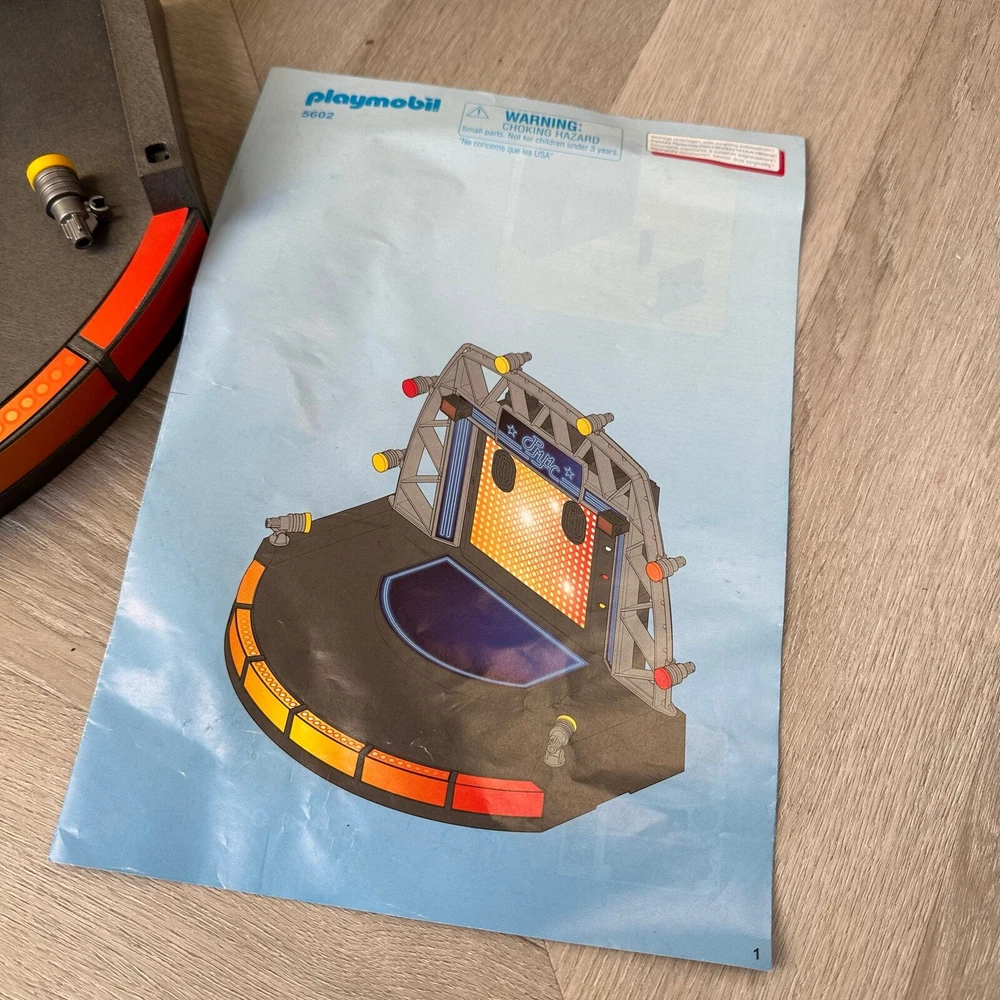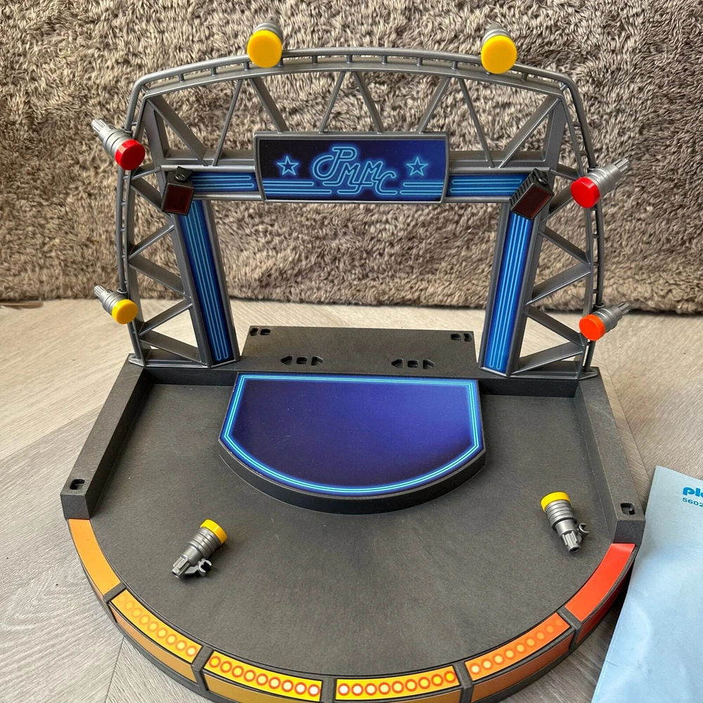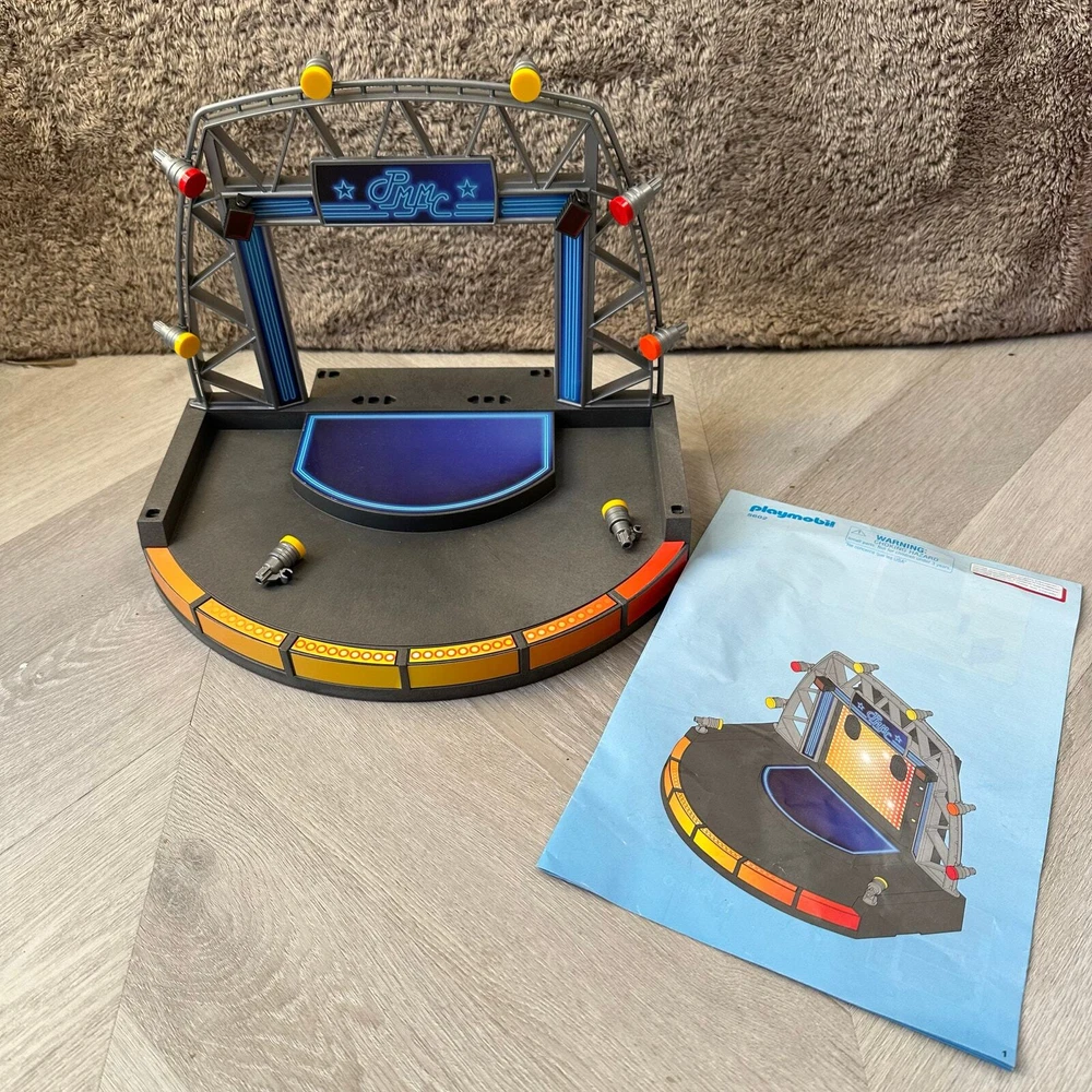 Playmobil 5602 PopStars! Stage PMMC City Life 2013 Stage is not quite complete but very usable for play, no figures or instruments and missing the pieces that prop the lights up on the floor, please see photos.