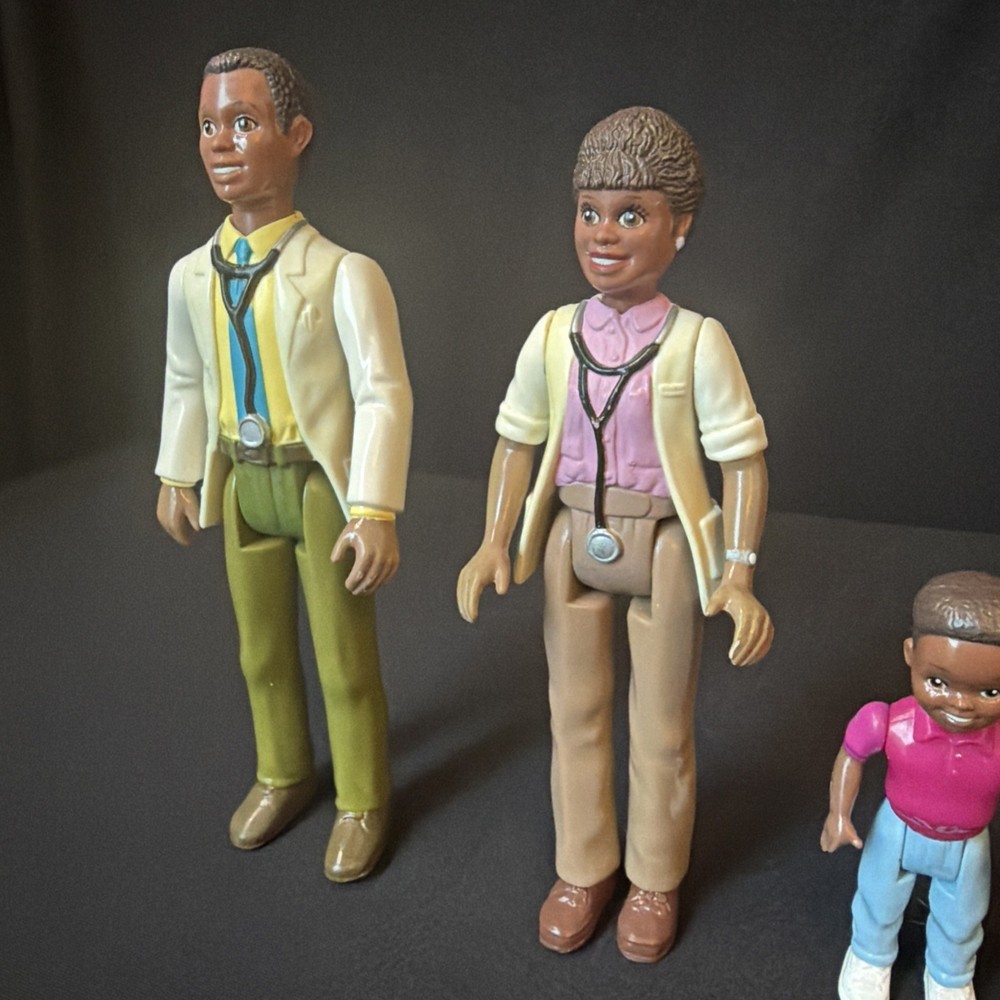 The Playskool African-American Family Of 3 Dollhouse - Dad & Mom are doctors set includes son. Manufactured in the 1990s, this set includes three dolls - a father, mother, and son - perfect for creating a realistic and diverse scene in a dollhouse. The brand Playskool is known for producing high-quality and durable toys, making this set a unique and special addition to any doll collection. CONDITION: Pre-owned. Please look at all photos as they are part of the Description (make sure you want it). The photos are of the actual item you are purchasing. No Refunds, No Guarantee, Items are sold "AS IS" and No Returns are accepted unless otherwise listed with condition. If it’s not in the photo’s It’s not included, Only have what’s in the photo’s. This does not include hangers, stands, tiered trays, or any items used to display products. I attempt to take quality photo's of the "actual Item, Please be aware the lighting, monitor settings & other factors can affect colors. All measurements are approximate. No batteries included and n any items due to shipping regulations. Please Ask any Questions before you purchase!!! Please check out my other listings - New items are listed daily! Add me to your favorite Self lers list for quick access to new listings!! Quick Shipping - items are shipped same day as payment, latest day after Thank you