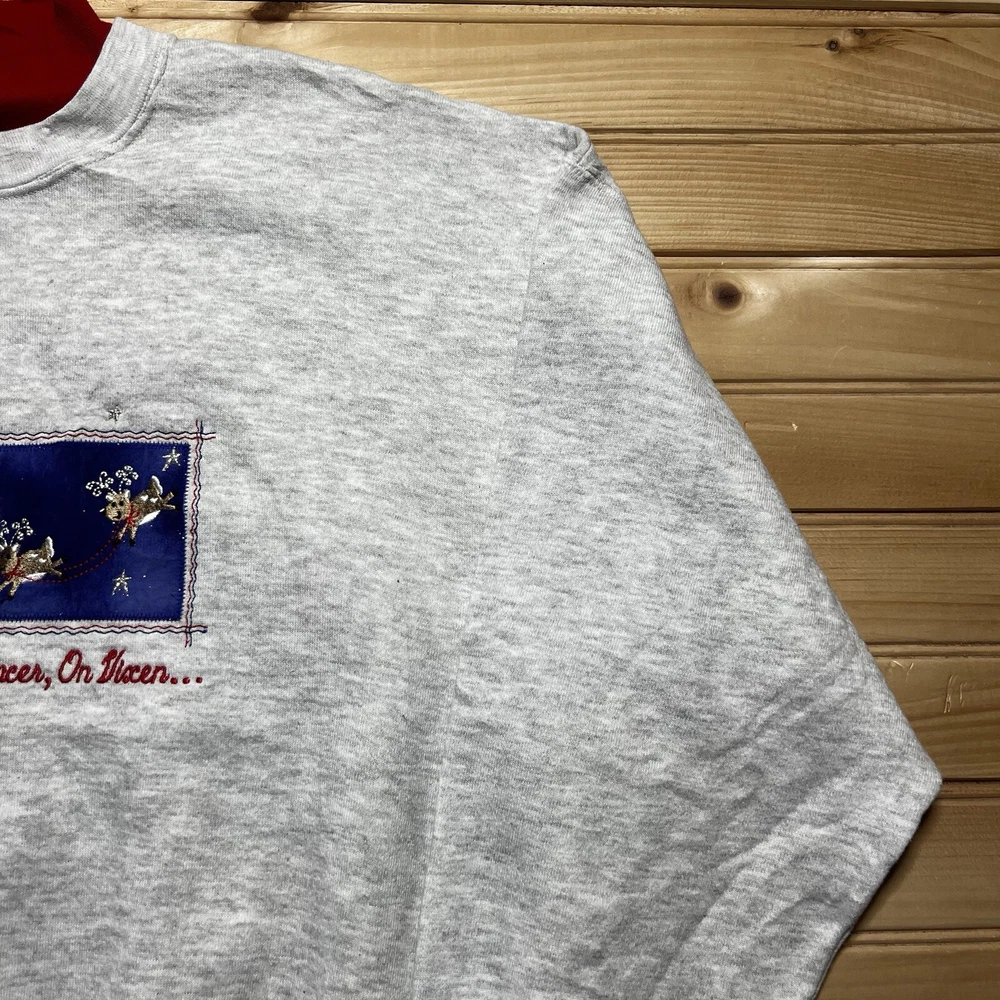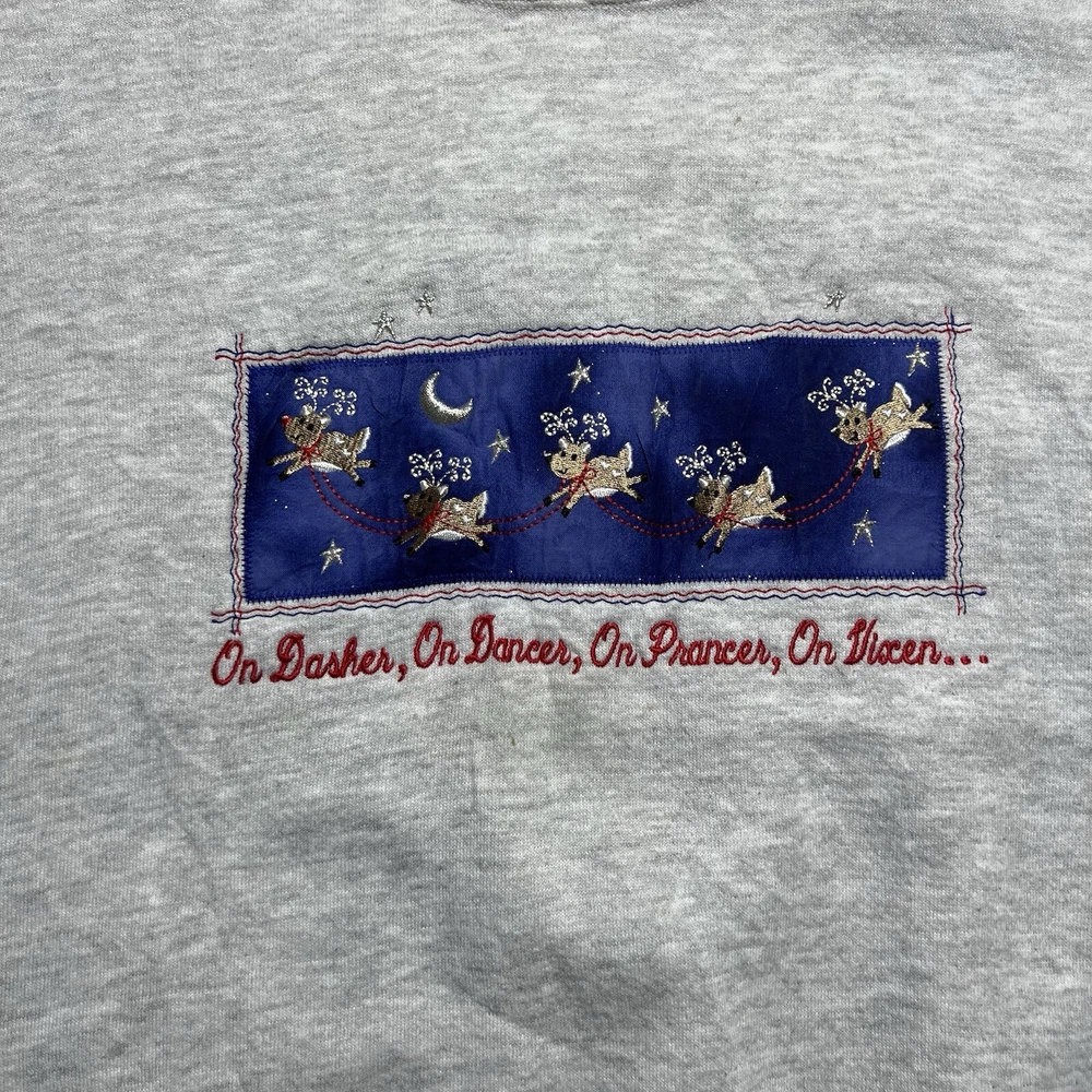 Pleasant Shade Reindeer Christmas Embroidered Holiday Sweatshirt Size XL