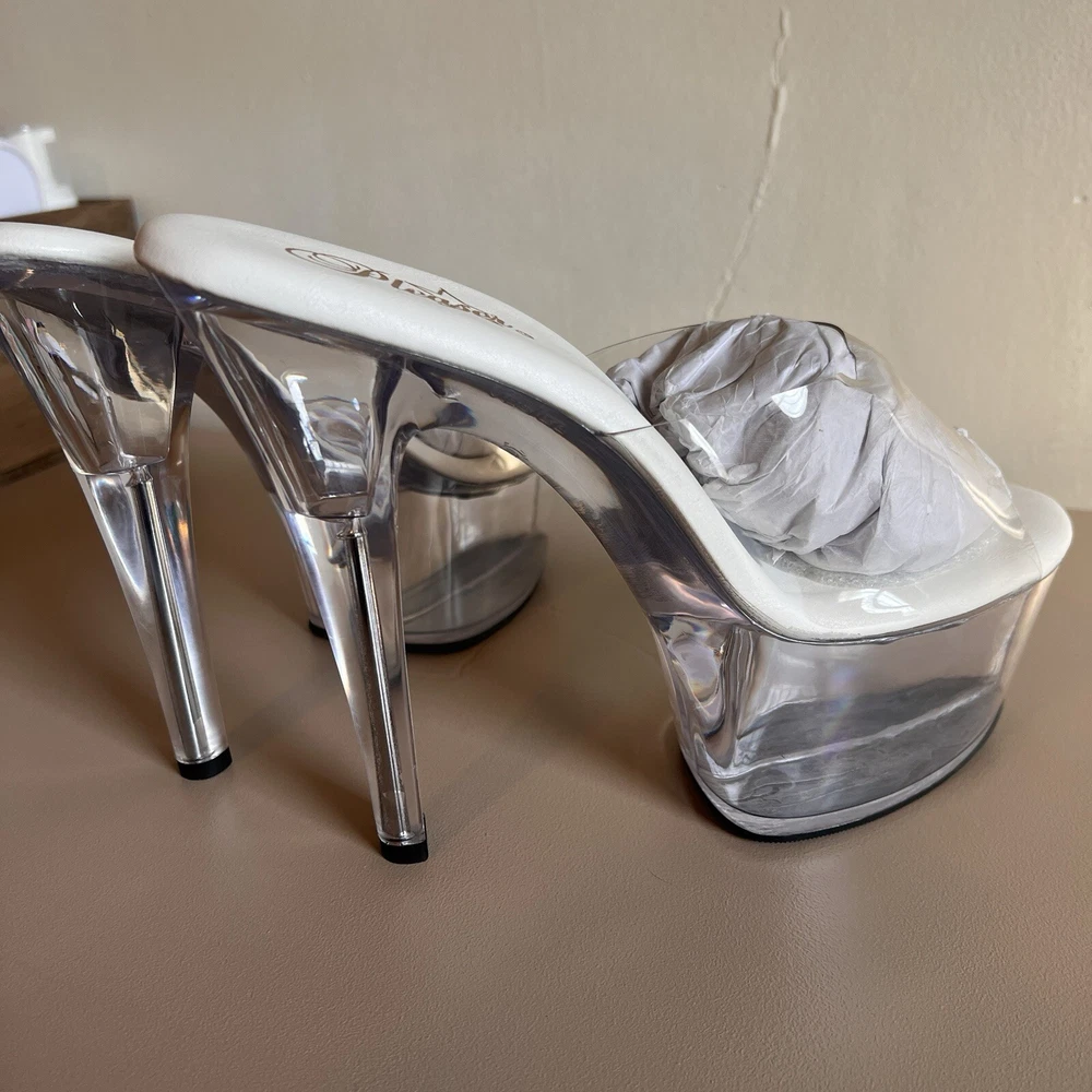 6" Heel 2 1/4" Platform Vegan Friendly Slide Discover the allure of the Aspire-601 slides, where fashion meets function in an elegant synthesis. With a 6-inch heel and a 2 1/4-inch platform, these slides offer an elevated stance, flawlessly blending drama and wearability. The vegan leather insole caters to those who value ethical fashion choices, providing a touch of luxury with every wear. The clear design exudes modernity, making these slides a versatile piece for any occasion, from special events to daily glamour. Experience the blend of style and comfort with the Aspire-601.