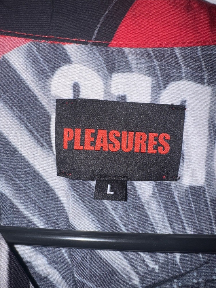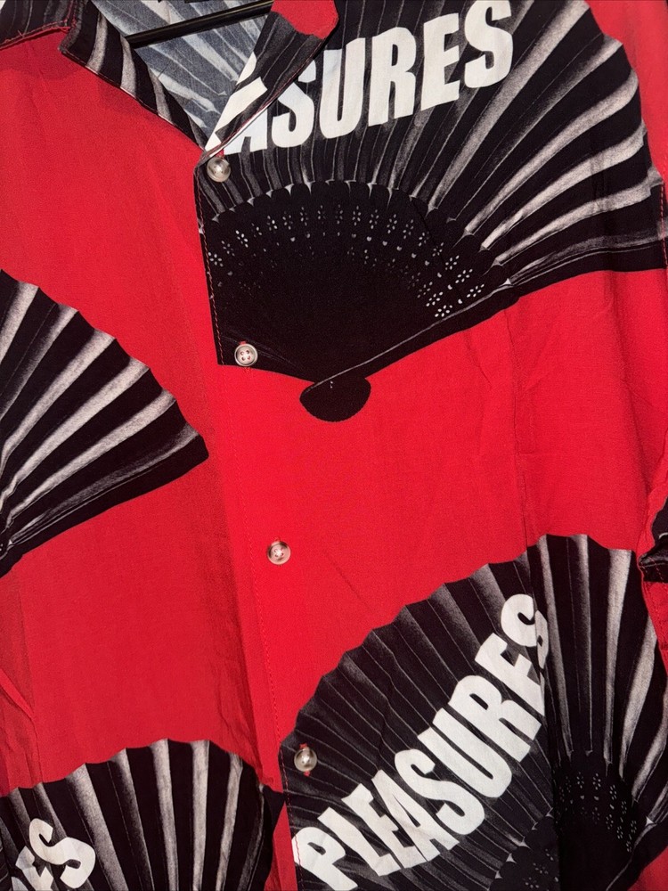 Introducing a stylish and comfortable long sleeve button-down shirt from Pleasures, perfect for men who want to elevate their wardrobe. This shirt comes in a striking red color with accents of buttons that add a touch of elegance to the design. The shirt is made of high-quality down fabric that provides comfort and durability, making it perfect for everyday wear. The shirt is available in size L, with a regular fit that is suitable for most body types. It has a classic T-shirt design with long sleeves and a button-down front that makes it versatile and suitable for any occasion. This Pleasures shirt is a must-have for any fashion-conscious man who wants to add a touch of style to their wardrobe.