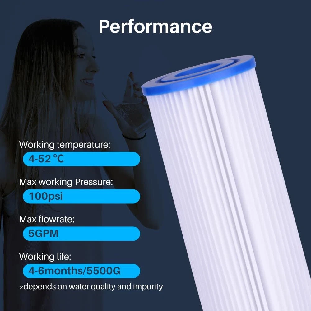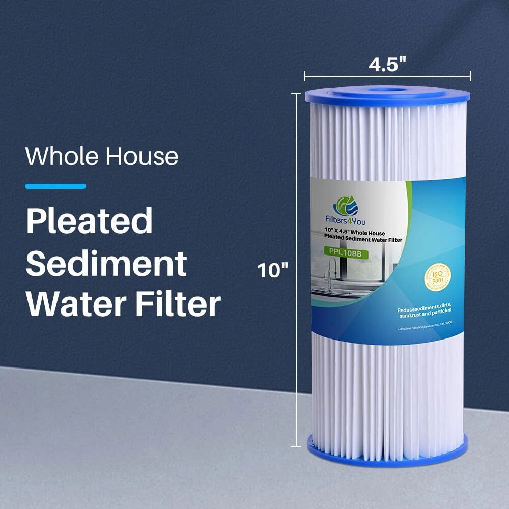 – Pleated Water Filter Cartridges with American Plumber W30PEHD, W50PEHD, FXHSC, GXWH40L, GXWH35F, W10-PR, R50-BBSA – Water Filter Cartridge COMPLETE FILTRATION SERVICES EST.2006 () is known for its quality, superiority, and effectiveness. Our customers mean everything to us. We never compromise on the quality of our products, and each product is individually inspected by us. We provide high quality water filter cartridges. The primary purpose of our sediment filter cartridge is to remove big and tiny particles such as sand, dirt, silt, and rust from drinking water. Our water filter cartridge assists in the removal of pollutants contained in tap water. If you don't filter your water properly, you and your family could be drinking water that is harmful to your . PRODUCT SPECIFICATION: ✅ Brand: Complete Filtration Services ✅ Item Name: Water filter cartridge ✅ Package Includes: Pleated Sediment Cartridges ✅ Color: White PRODUCT FEATURES: ✅ with W30PEHD, W50PEHD, FXHSC, GXWH40L, GXWH35F, W10-PR, R50-BBSA Models. ✅ High quality water filter cartridge. ✅ The cartridges provide high dirt holding capacity and superior sediment filtration. ✅ It is a package of Pleated Sediment water filter cartridges. ✅ This whole house water filter adopts food-polypropylene filtration media. It can effectively reduce taste and odor and contaminants, including all large particles and sediment. Our premium material and design are committed to providing you with tasty and healthy filtered water. ✅ The efficient sediment water filter can effectively prevent the clogging of water pipes and prolong the service life of water equipment. It provides you with stable and continuous water flow without obvious pressure drop. ✅ The pleated structure of this whole house water filter has a larger specific surface area and stronger absorption capacity than original sediment filters. Enjoy fresh water by replacing your filter every 3~ 6 months or 30,000 gallons, whichever comes first will vary based on water quality. Poor water quality will shorten the service life of the filter. To ensure the filtering effect, please replace your filter in time. ✅ with W10-PR, W15-PR, HD-950, AP801, GE GXWH-35F, GNWH-38F, GXWH35F, GXWH30C, GXWH-40L, GXWH-30C, HDSFI, GXWH35F, GNWH38F, GNQH38S, GXWH40L, HF45-10BLBK10PR, WHCF-WHPLBB, WHCFWHPLBB and most systems with 10" x 4.5" filters. ✅ Interchangeable with W50PEHD, GE FXHSC, R50-BBSA, WFHDC3001, R30-BB, S1-BB, W20CLHD, 155405, 155405-51, 155405-43, PL10B20, PC20-BB-S, FMBB-10-20, FF10BBPS-20, ECP20-BB and other 10" x 4.5" inches and 9.75" x 4.5" inches pre-filtration filters.