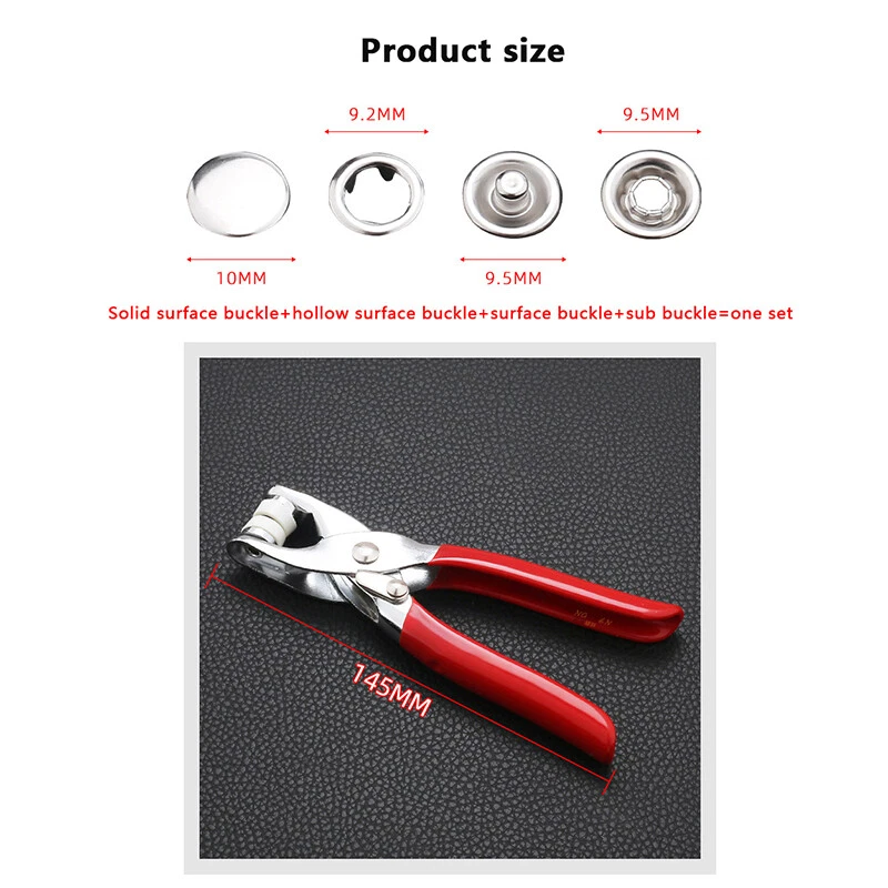 1. Diversity: the suit contains 50 sets of five-claw buttons, which can meet various decoration requirements. 2. Utility Tools: with pliers tool, it is convenient for users to install buttons, which can be easily operated by both novice and skilled craftsmen. 3. High quality metal materials: the buttons are made of corrosion-resistant metal materials, which are durable and can be matched with various fabrics to maintain good color and luster. 4. Broad application: it can be used not only to repair or make clothes, but also to decorate various DIY handicrafts, making your works unique. 5. Easy storage: suit have been classified and marked in detail on the package, which is convenient for users to store after use and avoid loss. Specification: Material: alloy Button size: 9.5*9.5mm Origin: China Package Included: Package 1: Pliers *1 Package 3: Five-claw buckle*50set Notes:Face buckle+sub buckle+bottom buckle+female buckle=one set Please allow slight dimension difference due to different manual measurement. Please note that slight color difference should be acceptable due to the light and screen. On 5-Dec-2024 at 14:47:35 EST, seller added the following information: