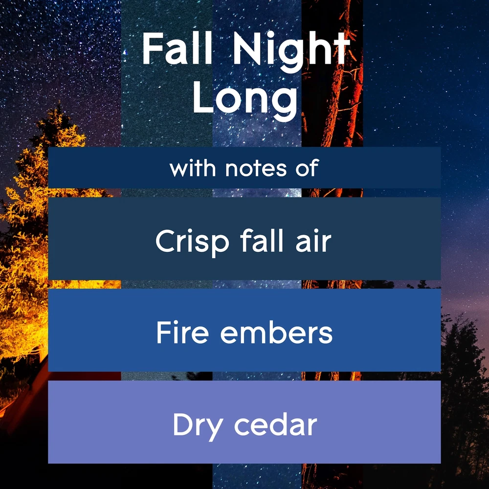Stir up the season with Fall Night Long plug in air freshener for home use. This limited edition scent diffuser is a great way to add a little glam and excitement to any gathering with festive fragrance and fall scents. This Fall Night Long plug in fragrance oil diffuser surrounds you with notes of crisp fall air, warm campfire and dry cedar. Bursting with woodsy scents, it’s perfect for any festive gathering. fall scents are crafted by master perfumers and infused with essential oils. Change the mood with our most adjustable warmer ever (vs. previous plug in warmer, on low setting). This plug in oil diffuser is perfect as an air freshener for rooms anywhere in your home, even your bathroom. The Holiday Spirit Collection is a range of limited-time-only fall scents that will get you in the mood to put on your party hat. Make home scents festive scents this fall with America’s #1 selling fall fragrance brand. Turn up the season with Fall Night Long, a limited edition plugIns(R) scented oil air freshener from the Holiday Glow Collection. Notes of crisp fall air, fire embers and dry cedar; it’s a room freshener that provides a luxurious and comforting vibe perfect for any moment. scented oil fragrances are crafted by master perfumers and include fragrance infused with essential oils. Get luxury scents at everyday prices with . Limited edition fragrances to turn up the season.