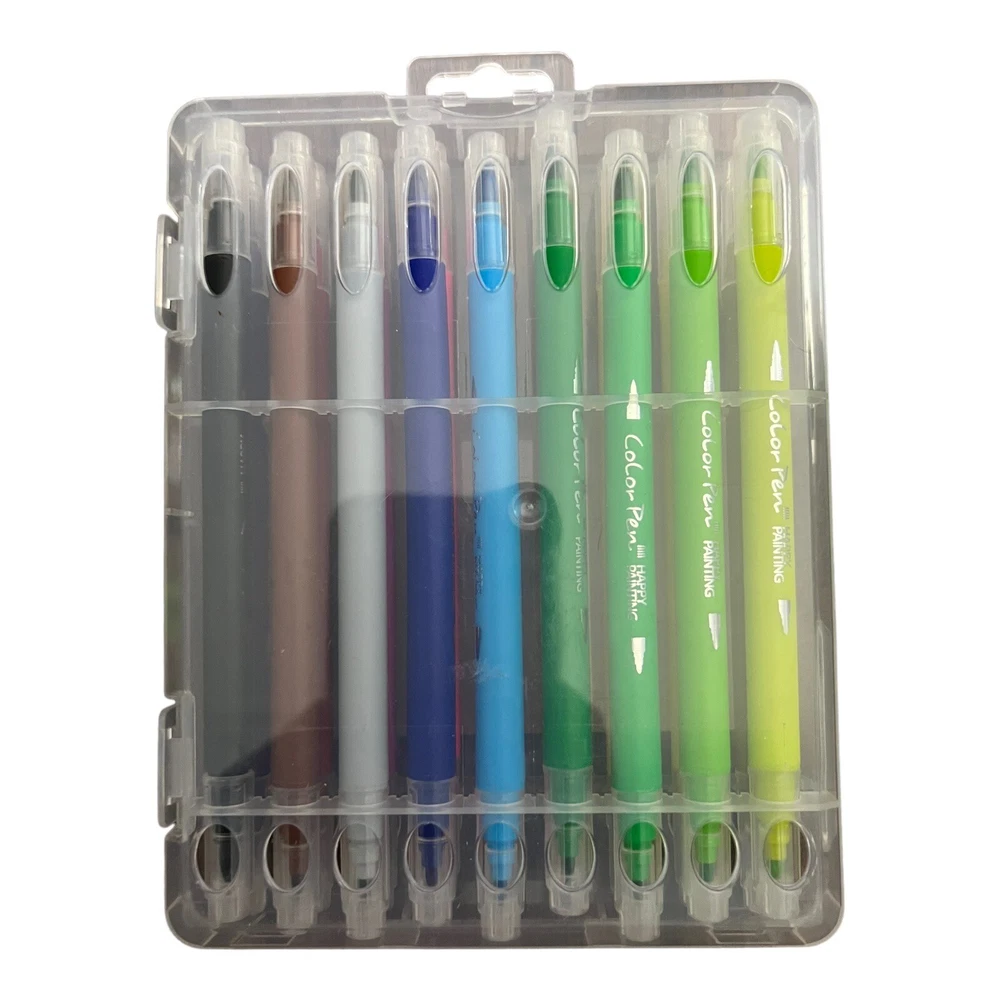 Dual Tip Watercolor Marker Set - 18 Colors - Unleash Your Artistic Expression Key Features: Dual Tips: Fine tip for intricate details, brush tip for broader strokes Vibrant Colors: Set of 18 vibrant watercolor shades Water-Based Ink: Blendable and easy to layer for creative effects Versatile Use: Ideal for drawing, coloring, and watercolor techniques Portable: Compact set for on-the-go creativity Durable Build: Quality markers for lasting artistic endeavors Non-Toxic: Safe for artists of all ages Product Description: Ignite your artistic flair with the Dual Tip Watercolor Marker Set featuring 18 vivid colors. This set is designed to elevate your creative projects with its versatile dual-tip design. The fine tip allows for intricate detailing, while the brush tip enables broader strokes and watercolor effects. With a spectrum of 18 vibrant colors, these markers offer endless possibilities for your artistic expression. Formulated with water-based ink, these markers are blendable, making them perfect for layering and achieving unique creative effects. Whether you’re into drawing, coloring, or experimenting with watercolor techniques, this set has you covered. The compact and portable design makes it easy to unleash your creativity on-the-go. Crafted with a durable build, these markers ensure lasting artistic endeavors that stand the test of time. These watercolor markers are non-toxic, making them safe for artists of all ages. Elevate your artwork and explore a world of colors with this Dual Tip Watercolor Marker Set. Additional Information: • Tips: Dual tips (fine and brush) • Colors: 18 vibrant shades • Ink Type: Water-based • Application: Drawing, coloring, watercolor techniques • Portable: Yes • Condition: I used it only once for color catalog that you can see in the photos. If you have any questions or concerns about the product please feel free to contact me.