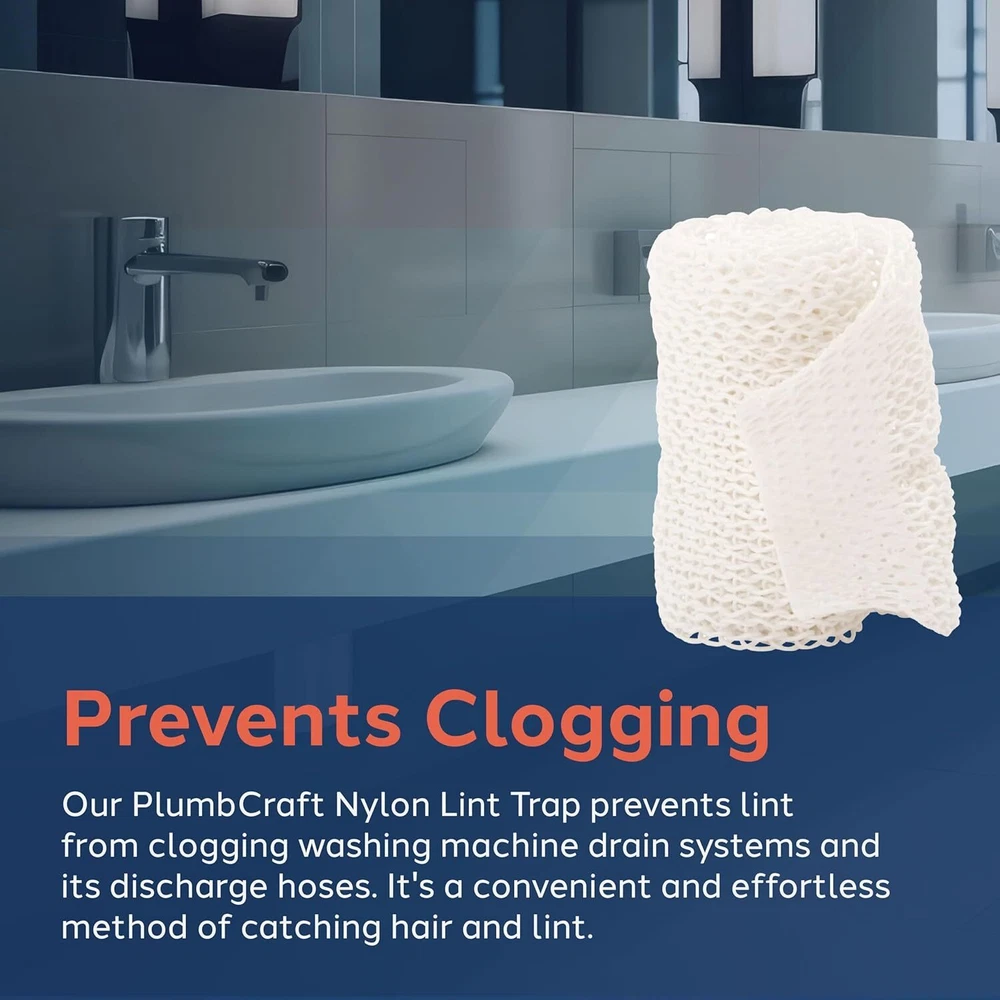 PlumbCraft 7639500T Nylon Lint Trap for Washing Machine Original Version Product Details Brand: PlumbCraft Color: Original Version Material: Nylon Style: Nylon Lint Trap Product Dimensions: 0.25"L x 3.8"W x 5.5"H Item Weight: 0.02 Pounds Global Trade Identification Number: 00028905763950 Manufacturer: Waxman UPC: 028905763950 PREVENTS CLOGGING: Our PlumbCraft Nylon Lint Trap prevents lint from clogging washing machine drain systems and its discharge hoses. It's a convenient and effortless method of catching hair and lint. SIMPLER ALTERNATIVE: Our lint catcher for washing machines is made from durable nylon that's easy to use. It's a simpler alternative to costly aluminum washing machine lint catchers. UNIVERSAL FIT: Our laundry hair catcher fits most washing machine discharge hoses. It uses a strong elastic form-fitting grip to attach to the ends of drain hoses, no matter what model they are. EASY TO INSTALL: Simply slip the laundry lint catcher onto the end of the washing machine's drain hose. The elastic keeps it firmly in place so you can intercept messy pet hair, human hair, and lint. WE UNDERSTAND YOUR NEEDS: At Plumbcraft we pride ourselves on getting to know our customers to fully understand their needs. We offer practical advice and cost effective solutions for your home. Product Description UNIVERSAL WASHING MACHINE LINT CATCHER FOR DRAIN HOSES Keep your drain systems clear and well-maintained so you can do laundry without incident and interruption. Our PlumbCraft Lint Trap for Hose Ends prevents lint from clogging washing machine drain systems and discharge hoses. It's a convenient and effortless method of catching hair, pet fur, and lint so laundry tasks always run smoothly. It's also an inexpensive way to maintain proper washing machine operation. Our lint catcher for washing machines is made from durable nylon that's easy to use and easy to clean. It's a simpler alternative to costly aluminum washing machine lint catchers. Take your easy-to-use filters anywhere they might be needed. Our laundry hair catcher fits most washing machine discharge hoses. It uses a strong elastic form-fitting grip to attach to the ends of drain hoses, no matter what model they are. They're especially handy when you're trading up on home appliances and just want the assurance of new washers. They also make an excellent gift as an apartment must-have or new home essential. Our washer hair catchers are easy to install. Simply slip the laundry lint catcher onto the end of the washing machine's drain hose. That's it! The elastic keeps it firmly in place so you can intercept messy pet hair, human hair, and lint. Slip them off when you need to dispose of the lint and effortlessly wash your lint traps for the next use. At Plumbcraft we pride ourselves on getting to know our customers to fully understand their needs. We offer practical advice and cost-effective solutions for your home. Get your PlumbCraft Lint Trap for Hose Ends today for sturdy, reliable plumbing that you can count on. From the Manufacturer This PlumbCraft lint trap is used for washing machine drain hoses. This package includes two mesh lint traps and installation instructions.