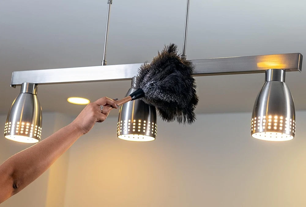 Plumero de plumas de avestruz para limpieza de teclado, hogar, coche, oficina Captura fácilmente partículas de polvo sin el uso de productos químicos agresivos. 100% PLUMA DE AVESTRUZ: Plumas negras de primera calidad, suaves y sedosas. Miles de filamentos suaves y diminutos que se encuentran en cada pluma actúan como un imán para atrapar y retener eficazmente las partículas de polvo. Hecho con plumas de avestruz de la más alta calidad disponible y proporciona una solución orgánica para limpiar su hogar con estilo.