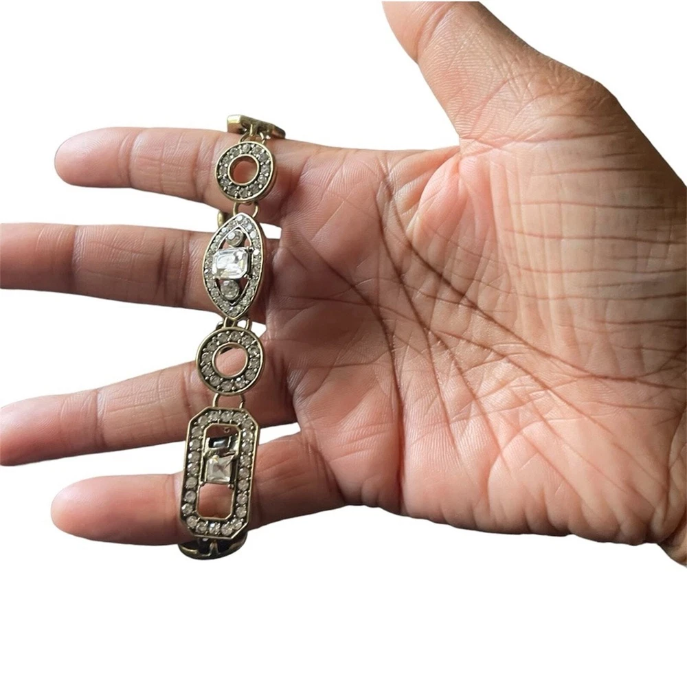 Plunder Victorian Eye Vintage Bracelet Gold Tone with White Crystal stones EUC Keywords: Feminine, Romantic, Gift, Formal, Retro, Unique, Glam, Vintage Vibe, Regency, Event, evening, homecoming, prom, wedding, bridesmaids, Bridgerton, statement bracelet, ethereal, classy, Classic, Regal