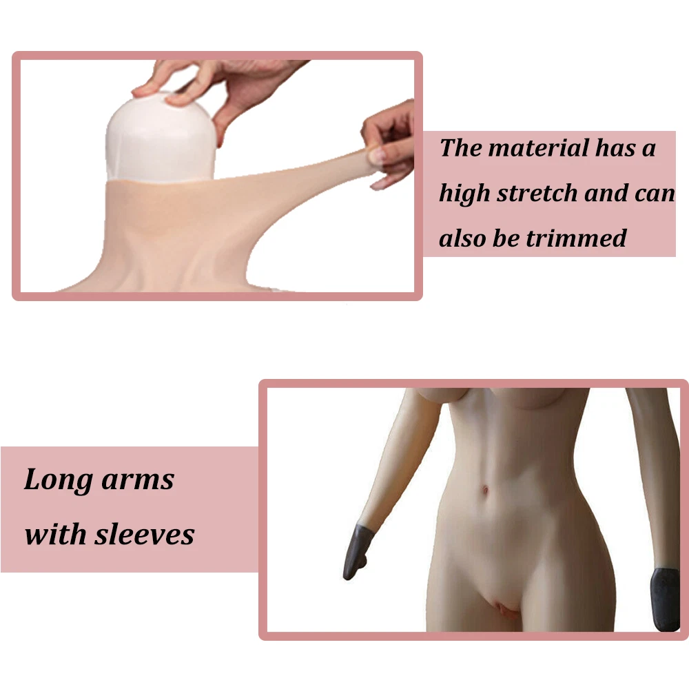 This silicone full-body suit is incredibly realistic and comfortable! The high elasticity makes it easy to wear, and the E-cup silicone filling gives a natural look. Perfect for cross-dressing, cosplay, or fun events like Halloween. The soft material feels great against the skin, and the high collar adds to the seamless illusion. Love that it comes in multiple shades for a perfect match. The option to customize with an open anus or zipper is a nice touch. Highly recommend for anyone looking for a high-quality, realistic bodysuit!