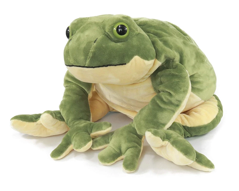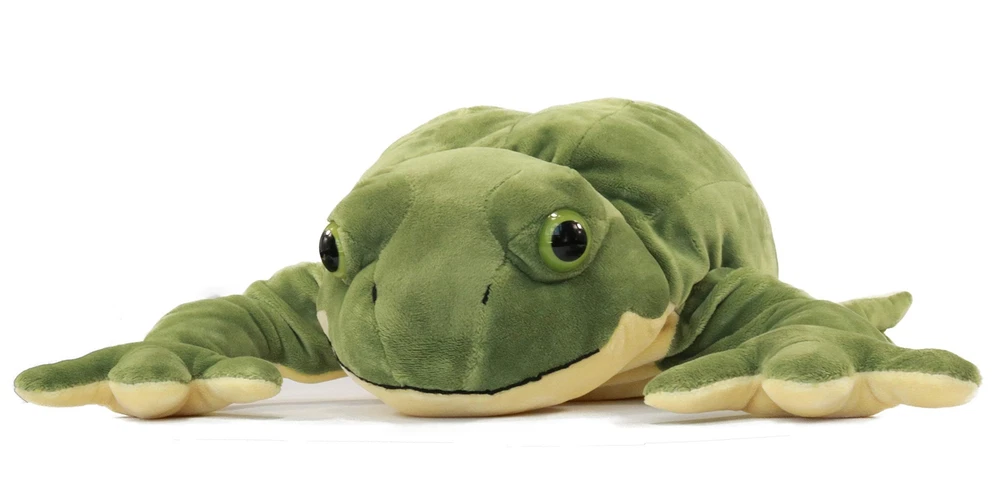 Scientific name of this frog is Conraua goliath (The largest frog in the world). Product size is 22 inches length from head to soles of the feet, big size. Soft, huggable material built to high-quality standards and hand wash best. Suit for kids toy, funny party props, early education animals, cute decorations in house. Children will like this big and realistic frog stuffed toy, perfect gift for birthday and holiday.