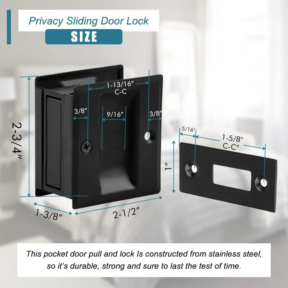 Store New Arrivals Add to Favorite View Feedback Contact Pocket Door Handle Pull without Switch Plate,Solid Pocket Passage Door Pull, Easy Install 2-3/4”X2-1/2”, for 1-3/8” Thickness Door,Matte Black Description Number of Items 1 Batteries Included? No Unit Count 1.0 Count Batteries Required? No Finish Matte Exterior Finish Brass Material Brass Item Depth 1.75 inches Package Type Flat Free Package (FFP) Metal Type Brass Specific Uses For Product Door Item Weight 5 ounces Size 1 Pack Lock Type Key Lock Special Features Easy to Install Special Feature Easy to Install Color Passage Style Handle Pull Handle Type Pull Handle Hand Orientation Ambidextrous Handle Material Brass Shape Arch & Bow Finish Type Matte Included Components Instruction Manual, Lock Product Dimensions 4"L x 3"W Number Of Pieces 1 Specification: 2-3/4" x 2-1/2" x 1-3/8" Reversible:Passage Sliding Pocket Door Handle Pull has a wide, easy grip design, It's reversible for either a right or left handed door.Satin Nickle and matte black finish can match most of doors Fits Most Pull Doors:The sliding Door Pocket fits most pull pocket doors, can be adjusted to install on both 1-3/8” and 1-3/4” thick doors and is a mortise installation Easy Installation:Our Pocket Door Handle is easy to install, all hardware and Instructions are Included.The Lock Set Is Non-Handed, allowing it to be used on both left and right-handed pocket doors Solid Brass Sliding Door Pull passage Pocket Lock: Spec: 2-3/4" x 2-1/2" x 1-3/8" Finish: Matte Black Material: Solid Brass Qty: 1 Pack ABOUT US We offer the best prices around on high quality products. Our E-store includes media such as books, movies, music and games while offering electronics, toys, sporting apparel, clothing, tools, general home, garden items and more. SHIPPING We are always working hard to ensure your package arrives as soon as possible. Please understand that some factors like weather, high postal traffic, and the performance of shipping companies are outside of our control. We offer free shipping to the lower 48 states and ship within 2 business days of payment, usually sooner. We do not accept P.O. Boxes. Please provide a physical address. For shipping outside of the continental USA, we only use eBay's Global Shipping Program.The item is shipped to KY and then sent to the rest of the world. International customers are responsible for all duties and taxes. Continue to check out in order to calculate costs for shipping the item to your country. Messages regarding eBay's Global Shipping Program MUST be directed at eBay EXCLUSIVELY. RETURNS We offer a 30-Day Return Policy on items which you are not completely satisfied with. You have the option for a full-refund or an exchange of the item. No returns are available on items shipped outside of the USA. PAYMENT We accept PayPal. CONTACT US This page content is yet to come Please ad us to your favorite seller and visit again later Thank You CUSTOMER SATISFACTION We try our very best to make sure every customer is completely satisfied. If there's a problem, message us! We're happy to help. WE ACCEPT Copyright © 2021 AutoDS. | All Rights Reserved