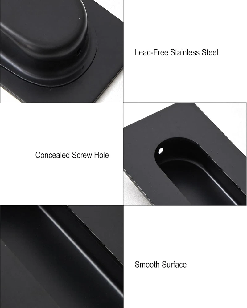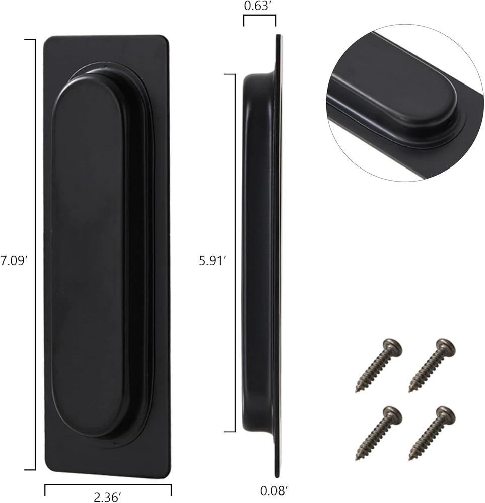Store New Arrivals Add to Favorite View Feedback Contact Pocket Door Pull Recessed Door Handle, 7 Inch Large Size Handles for Sliding Closet Door Drawers Cabinets, Black Stainless Steel Finger Flush Pulls(2 Pack) Description Number of Items 2 Shape Rectangular Finish Type Brushed Theme Home Improvement & Organization Batteries Included? No Unit Count 2.0 Count Batteries Required? No Finish Brushed Exterior Finish Stainless Steel Material Stainless Steel Item Depth 0.51 inches Metal Type Stainless Steel Specific Uses For Product Door, Cupboard Included Components Pulls and Screws Number Of Pieces 2 Item Weight 12 ounces Special Features Rustproof Special Feature Rustproof Color Stainless Steel Black(2 Pack) Style Finger Pull Handle Type Pull Handle Handle Material Stainless Steel Product Dimensions 7"L x 0.62"W Size 7 Inch DESIGN IMPROVEMENT: All Edges and surface of recessed door handles are finely chamfered. Almost no sharp edges. Finger depth improvement of pocket door pull lets you open and close easily. EASY TO INSTALL: Recessed door pulls is fixed perfectly into the hole by 2 screws or glue, invisible screws on top surface makes it modern and simple. Screws are included in the set. APPLICATION: Flush pull handle can be used for barn door, sliding barn doors, pocket doors, sliding closet door, cupboard, bifold door, french door. Also sutibale for farmhouse,furniture, cabinets, and kitchen applications. HEAVY DUTY: Pocket door handles are made of 304 solid stainless steel and rust proof powder coating, more sturdy. DIMENSIONS: The size of closet door finger pull is 7 Inch x 2.36 Inch x 0.63 Inch, and the panel thickness is 2mm. And slot is High 5.7" x Width 1.46" x Depth 0.51". If the sliding door is two sides pulls, door thickness should more than 26mm. Product Description Good Idea for Home, providing various quality products. Recessed Door Handles -Solid stainless steel and rust proof powder coating. Be used for barn door, sliding barn doors, pocket doors, sliding closet door, cupboard, bifold door, french door. Barrel Bolt Latch Gate Latch -Heavy duty hardware, different sizes and colors. Provide security and privacy to home, garden, warehouse. Napkin Rings -Handmade with natural agate slices. Dinner table home decor for parties, holidays, wedding. ABOUT US We offer the best prices around on high quality products. Our E-store includes media such as books, movies, music and games while offering electronics, toys, sporting apparel, clothing, tools, general home, garden items and more. SHIPPING We are always working hard to ensure your package arrives as soon as possible. Please understand that some factors like weather, high postal traffic, and the performance of shipping companies are outside of our control. We offer free shipping to the lower 48 states and ship within 2 business days of payment, usually sooner. We do not accept P.O. Boxes. Please provide a physical address. For shipping outside of the continental USA, we only use eBay's Global Shipping Program.The item is shipped to KY and then sent to the rest of the world. International customers are responsible for all duties and taxes. Continue to check out in order to calculate costs for shipping the item to your country. Messages regarding eBay's Global Shipping Program MUST be directed at eBay EXCLUSIVELY. RETURNS We offer a 30-Day Return Policy on items which you are not completely satisfied with. You have the option for a full-refund or an exchange of the item. No returns are available on items shipped outside of the USA. PAYMENT We accept PayPal. CONTACT US This page content is yet to come Please ad us to your favorite seller and visit again later Thank You CUSTOMER SATISFACTION We try our very best to make sure every customer is completely satisfied. If there's a problem, message us! We're happy to help. WE ACCEPT Copyright © 2021 AutoDS. | All Rights Reserved