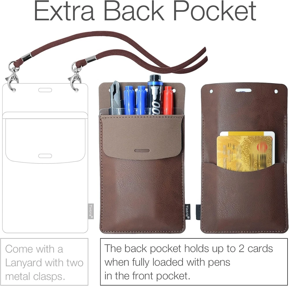 Upgraded Design with Lanyard – A Durable lanyard diversifies the use of your pocket protector. Pens Never Fall Out – The build-in transparent divider makes your pens and small Tools stay properly in the protector. Additional Back Pocket – The extra back pocket can hold your cards or small articles with your pens any time you need. Multi-functional Pouch – The pocket protector easily organizes your pens and small tools in your pocket, securely. A Great Gift – This pocket pouch is a great gift for you, your friends and family members, who always need pens with them.