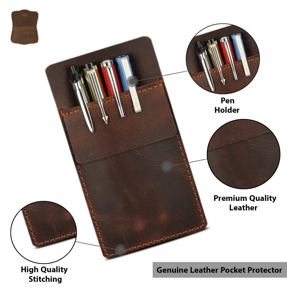 CestAntiQ leather pocket protector product is made of premium full grain leather. We leave unhanded to maintain its natural, authentic character. Each CestAntiQ product has a soft, supple feel and come in a unique, one-of-a-kind shade. CestAntiQ Pocket Protector can hold all tools, as a pocket protector, you can fix and organize pens, rulers, utility knives, markers and small tools, credit cards. Pocket protector is hand-made with the highest quality full-grain leather. Leather is soft and has a silky texture to the touch, but it is still very durable and can last a lifetime. Perfect for offices, schools, hospitals, shops, business meetings, forums or conferences. This is the best gift for people who often carry pens with them, such as teachers, students, journalists, engineers, artists, and office workers. It can be put in a T-shirt pocket, shirt pocket or lab coat.