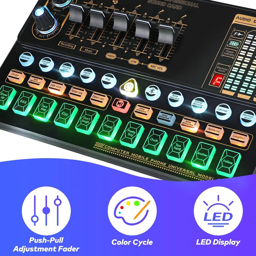 Store New Arrivals Add to Favorite View Feedback Contact Podcast Equipment Bundle, BM800 Condenser Podcast Microphone Bundle Kit with Live Sound Card, Streaming Audio Mixer Studio All-In-One Beginner Podcast Package for Recording Youtube Tiktok Description Frequency Range 20-20KHz Signal-to-Noise Ratio 78 dB Power Source Battery Powered Item Dimensions 6.69 x 2.76 x 3.94 inches Material Type Plastic, Metal Audio Sensitivity 10 dB Model Number BM800 Number of Channels 1 Model Name BM-800 Microphone Form Factor Table Array Number of Batteries AA batteries required. Hardware Platform PC, Tablet, Smartphone Connector Type 3.5 mm Jack Item Weight 800 Grams Connectivity Technology Bluetooth, Auxiliary Impedance 140 Kiloohms Special Features 1-Touch Recording, Volume Control, Mute Function, Noise Reduction Special Feature 1-Touch Recording, Volume Control, Mute Function, Noise Reduction Color DJ Compatible Devices Audio Interface Polar Pattern Unidirectional Recommended Uses For Product Singing Included Components Condenser Microphone Bundle Precision Sound Control: Our audio mixer and BM800 microphone set is the epitome of audio versatility. This dj mixer is your command center for voice and sound effects, tailor-made for live streaming, podcasting, singing, and gaming voiceovers. It offers real-time audio monitoring through headphones, allowing you to effortlessly adjust frequencies and refine your background music. Exceptional Audio Clarity: Our podcast equipment bundle boasts state-of-the-art noise reduction and cardioid pickup patterns, capturing your voice with precision from all directions. The double-layer POP filter and windproof foam cap eliminate unwanted noises, while our DSP audio processing chip enriches your sound with professional reverberation settings, rivaling the quality of a recording studio. Interactive Sound Effects: Spice up your live streams with the V10Xpro sound card's 16 special sound effects and 14 Beautifying voices presets. With a simple press, you can switch between sounds, adding an interactive and entertaining dimension to your broadcasts. The user-friendly interface ensures quick and easy sound adjustments for a more dynamic live experience. Designed for Live Streaming Excellence: Our ASMUSE podcast microphone bundle is built to support collaborative live streaming, accommodating up to 4 people, 3 devices, and 2 platforms simultaneously. With multiple inputs and interfaces, including 2 mics inputs, headphone and earphone jacks, and mobile live streaming capabilities, it offers comprehensive real-time monitoring and effective noise reduction for a professional broadcast. Vibrant Visuals and Intuitive Controls: The Asume beginner podcast kit's 7-color backlight and LED display add a touch of sophistication to your setup. The cycle flashing lights and high-end display ensure you're always in control, while the push-pull design provides a comfortable and long-lasting tuning experience.  Ultra-Low Noise Performance: Our podcast recording equipment boasts a high signal-to-noise ratio, ensuring pristine recordings with minimal distortion. The unique 3-layer protection system provides a clear, plosive-free vocal performance great for singers and podcasters. Seamless Compatibility: Universally compatible with computers, tablets, and smartphones, our recording studio equipment is the perfect addition to any podcast starter kit. It offers a plug-and-play solution for various platforms, making it versatile for streaming, chatting, content creation, and more.  Long-lasting Portable Power: With a built-in 1200mAh rechargeable battery, our podcaster equipment bundle ensures up to 4-6 hours of continuous use, providing portable power for your creative endeavors anywhere, anytime. Product Description Why Choose Asmuse Condenser Microphone Bundle Professional Recording Studio Equipment: Equiped with BM-800 microphone, Shock mount, Pop filter, Mic adjustable suspension scissor arm stand, Anti-wind foam Cap, Power cable, Sound card. Professional Live streaming Audio Mixer: 11 kinds of fixed background special effects sound, 5 kinds of sound changing modes, 5 kinds of special functions (KTV/ Concert/ Recording/ Sell Goods/MC), adds more fun to your live streaming and podcasting. Your Best Helper For Playing And Recording High quality microphone performs perfectly and reproduces excellent sound that guarantees your exquisite sound. One-Click Noise Reduction Equipped with one-button noise reduction, it is convenient and effective to reduce off-axis noise such as room environment, while maintaining maximum function. Smart Bluetooth Technology First Bluetooth connection: Turn on the live sound card, search for " V8 SoundCard " and click the link. ABOUT US We offer the best prices around on high quality products. Our E-store includes media such as books, movies, music and games while offering electronics, toys, sporting apparel, clothing, tools, general home, garden items and more. SHIPPING We are always working hard to ensure your package arrives as soon as possible. Please understand that some factors like weather, high postal traffic, and the performance of shipping companies are outside of our control. We offer free shipping to the lower 48 states and ship within 2 business days of payment, usually sooner. We do not accept P.O. Boxes. Please provide a physical address. For shipping outside of the continental USA, we only use eBay's Global Shipping Program.The item is shipped to KY and then sent to the rest of the world. International customers are responsible for all duties and taxes. Continue to check out in order to calculate costs for shipping the item to your country. Messages regarding eBay's Global Shipping Program MUST be directed at eBay EXCLUSIVELY. RETURNS We offer a 30-Day Return Policy on items which you are not completely satisfied with. You have the option for a full-refund or an exchange of the item. No returns are available on items shipped outside of the USA. PAYME