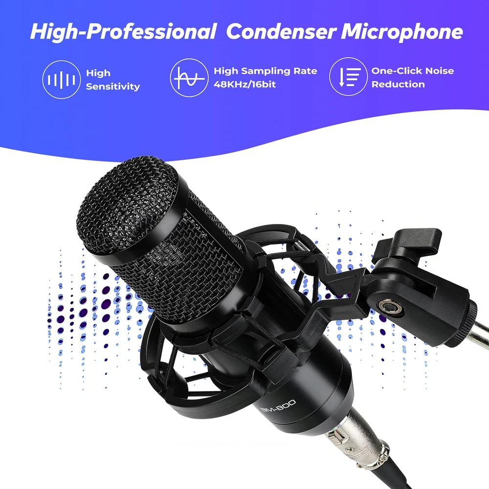 Podcast Equipment Bundle, BM800 Condenser Podcast Microphone Bundle Kit with Liv