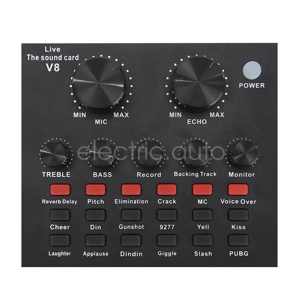 Home Arduino Module Sensor Chips About Us Features: 1. [Multi-sound] 112 kinds of electric sounds, 18 kinds of sound effects, 6 kinds of effect modes 2. [Multi-button control] Reverb size adjustment, microphone volume adjustment, treble and bass adjustment, recording volume control, music volume control, monitor volume control 3. [Multiple Connections] Support 4 devices and a cell phone Bluetooth connection, up to 5 devices can be connected to the sound card at the same time. 4. [HIFI chip] Built-in professional HIFI sound card chip, high-fidelity HIFI sound quality, excellent sound reproduction 5. [Capacitive diaphragm microphone core] Large microphone core diaphragm head with high sensitivity, accurately capture the human voice signal Specification: Frequency Response: 20Hz-20kHz Sensitivity: -34dB±2dB (OdB=1V/Pa at 1kHz) Output Impedance: 150Ω±30% (at 1kHz) Load Impedance: ≥1000Ω Equivalent noise level: 16dB A Maximum SPL: 132dB (at 1kHz ≤1% T.H.D) Audio Interface: XLR-3.5mm Signal-to-noise ratio: 78dB Current consumption: 3mA Stand size: 35cm*35cm Sound card: V8 sound card Bluetooth version Lithium battery power: 1000mAh Packing list: 1x Microphone 1x Microphone stand 1x Shockproof stand 1x Anti-spray net 1x sponge cover 1x microphone power cord 1x usb power cable 2x audio cable 1x Sound Card Payment Shipping Refund Payment We accept PayPal only. But we only Accept your Ebay Address ,Please Make sure it's 100% right. Payment must be received in 5 business days of auction closing. Please leave note for your special request (e.g. Colors or Size) in PayPal when you pay the order. Any special request cannot be accepted after 24 hours of payment, because most of orders will be processed instantly and same day dispatched. Shipping Fill your shipping info Refund All package need to wait 30 days (US only n eed 7-10 days) , Please take care it.Less than 30 days,we can't take a refund . If the item is defect when you receive it or you are not satisfied with it, please return it within 14 days for a replacement or money back. But the items must be back in factory condition. Please contact us and double check the return address before you return it. If is item is defective in 12 months, you can return it to us. We will send you a new replacement after receiving the defective item.