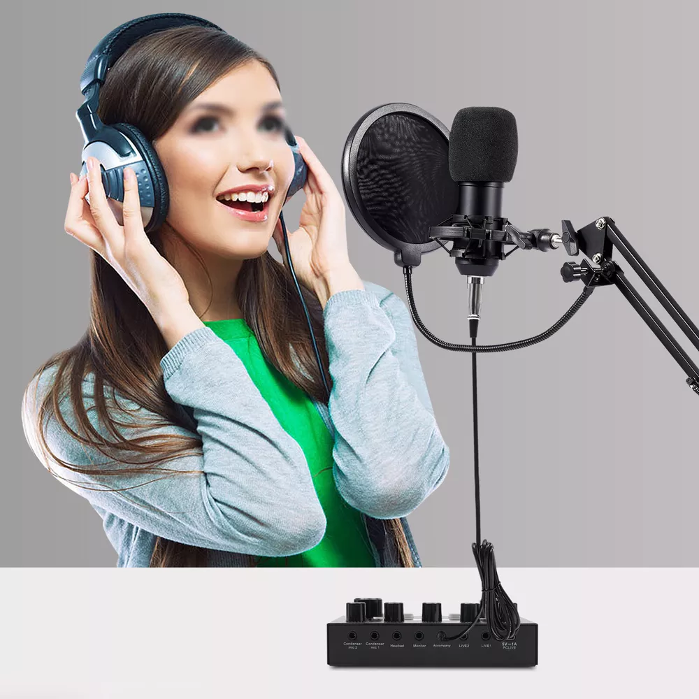 Podcast Equipment Bundle Home Studio Recording Kit Music Mixer Headphones NEW Home Studio Recording Kit Microphone Set Music Podcast Equipment Mixer Condenser Description The live-streaming industry has become increasingly popular in recent years. More and more people are using live streaming platforms to teach, sell, etc., bringing more fun into people's lives. If you want to be like them, then our high-quality, powerfully functional, multi-sound mode podcast equipment bundle is a great helper for your broadcasting work and can bring a clearer experience to your audience. Key Features Build to Last: This podcast equipment bundle is made of high-quality plastic and metal and adopts a baking paint treatment, making it durable, so you can use it without frequent replacement, which can save your use cost. Multiple Sound Modes: It includes 7 sound modes, 10 sound effects, and 4 sound changing effects (female, male, baby, and monster), which can effectively solve embarrassing problems when you can't be responded in the live broadcast room, making your live broadcast more interesting and vivid. Clear Vocals: It offers a sampling rate of up to 24 bits/192 kHz for unparalleled clarity in your recordings. The three-layer protection system prevents noise and the microphone allows direct limiting of the sound card. High Compatibility: It can be used on any mobile phone (even two phones at the same time), Bluetooth, PC, tablet, iPad, PS4, Switch, Apple iOS, Android, and most gaming platforms to meet your needs in different scenarios. Fully Featured: This podcast equipment bundle contains almost all the common functions of broadcasting, such as treble, bass, record, monitor, echo/MIC adjustment, accompaniment, voice change, and elimination of the original sound in the song, bringing more possibilities to your live broadcast. Easy to Use: After assembly, you just plug this recording microphone into the mixer socket and use the device without the need for additional driver software. The user-friendly operation panel and two English manuals also help you a lot. Ideal Gift: With its powerful functions, it is a great gift for friends and family who love or are engaged in the live broadcast industry so that they can enjoy a more convenient live broadcast environment. Modern Appearance: The smooth lines and timeless black give this product a sense of modernity and fashion, bringing a cool element to your live broadcast. Highly Portable: Thanks to the detachable design and lightweight (2.43 lbs), you can easily carry this podcast equipment bundle in your bag for outdoor broadcasts or performances. Details Mount Bracket: It can stably hold the microphone without easy shaking. It's also adjustable to provide you with a more comfortable position. Blowout Preventer: It effectively filters out external noise to give you a clearer and more audible sound. Earphones: The earphones with long lines eliminate the need to purchase additional headphones and allow you to hear yourself live. Microphone Cover: It can protect your microphone and prevent sundries from entering. Application It is suitable for live streaming, broadcasting, podcasting, singing, music recording, and gaming at home, office, school, etc. It is ideal for live broadcast enthusiasts, beginners, DJs, etc. Specification Color: Black Material: Plastic, Metal Process: Baking Paint Model of Condenser Microphone: BM800 Assembly Required: Yes Mounting Type: Clamp Hanging Compatible Devices: Laptop, PC, Tablet, Smartphone Number of Pieces: 1 Sound Modes: 7 Sound Effects: 10 Sound Changing Effects: 4 Power Source: Battery Powered Battery Type: 1 * 18650 Lithium Batteries (Included) Battery Capacity: 500mAh Standby Time: About 2 Hours Diameter of Jack Port: 3.5mm/0.14inch Sensitivity: -34 dB ± 2 dB (0 dB = 1 V/Pa at 1 kHz) Frequency Range: 20H - 20kHz Equivalent Noise Level: 16 dB-A Impedance: <= 200 ohms Recommended Load Impedance: >= 1000 ohms Connector: 3-pin XLR to IEC Max. Sound Pressure Level: 132 dB (1kHz ≤ 1% THD) Bow Clamp Distance: ≤4.5cm/1.77inch Live Sound Card Size: 12.5*10.6*2.7cm/4.92*4.17*1.06inch Microphone Size(D*H): 16*47cm/6.3*18.5inch Package Size: 42*20.5*6.8cm/16.54*8.07*2.68inch Net Weight: 1.1kg/2.43lbs Gross Weight: 1.4kg/3.09lbs Package Included 1* Live Sound Card 1* Microphone 1* Mic Tripod Set 1* Microphone Cover 1* USB Cable 2* 3.5mm TRRS Audio Cables 1* XLR Cable 1* Earphones 1* Blowout Preventer 2* English Manuals All Accessories for Installation Notes 1. Please charge the battery after receiving the product and press and hold for 5 seconds when switching on the product. Please do not put the microphone too close to the sound card when switching it on, otherwise, there will be noise. 2. For a better user experience, please read the user manual before setting up. 3. Please note that if your phone does not have a 3.5mm jack, you need an adapter(not included) (TYPE-C, Apple, mini USB, etc to 3.5mm). 4. Please allow the slight color difference caused by the shooting light and 1-3 cm error due to manual measurement, and make sure you do not mind before ordering. Payment Delivery details Terms of sales About us Contact us Payment We accept ebay payment 。 Fees such as import duties, taxes are not included in the item price or shipping costs. These charges are the buyer's responsibility. Delivery details Shipping: 2-9 working days to: USA Terms of sales We maintain high standards of excellence and strive for hundred percent customer satisfaction. Feedback is very important to us. We hope that you contact us immediately before you give neutral or negative feedback, so that we can address your concerns. It is impossible to address issues if we do not know about them! About us Your satis faction is our ultimate goal. We work hard to earn your trust and future business. Our certified technicians have tested each item before shipping. The unit comes with 1 year limited warranty on all manufacturing defects. a) If you receive a defectiv