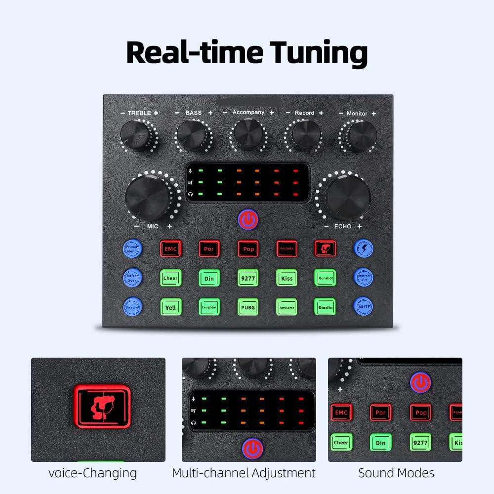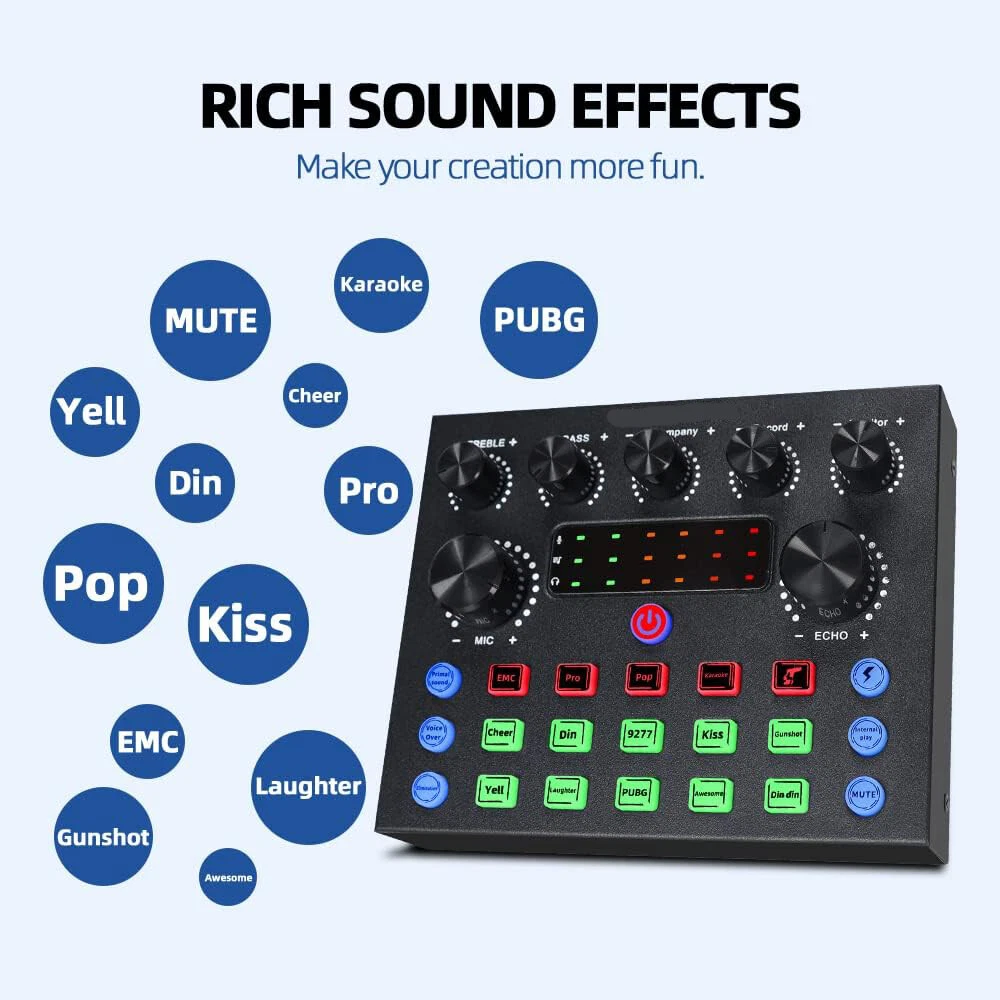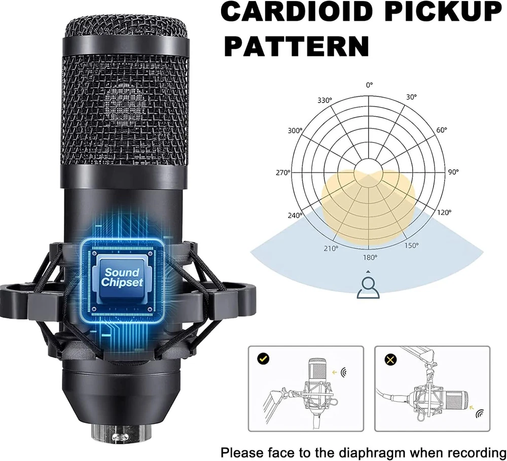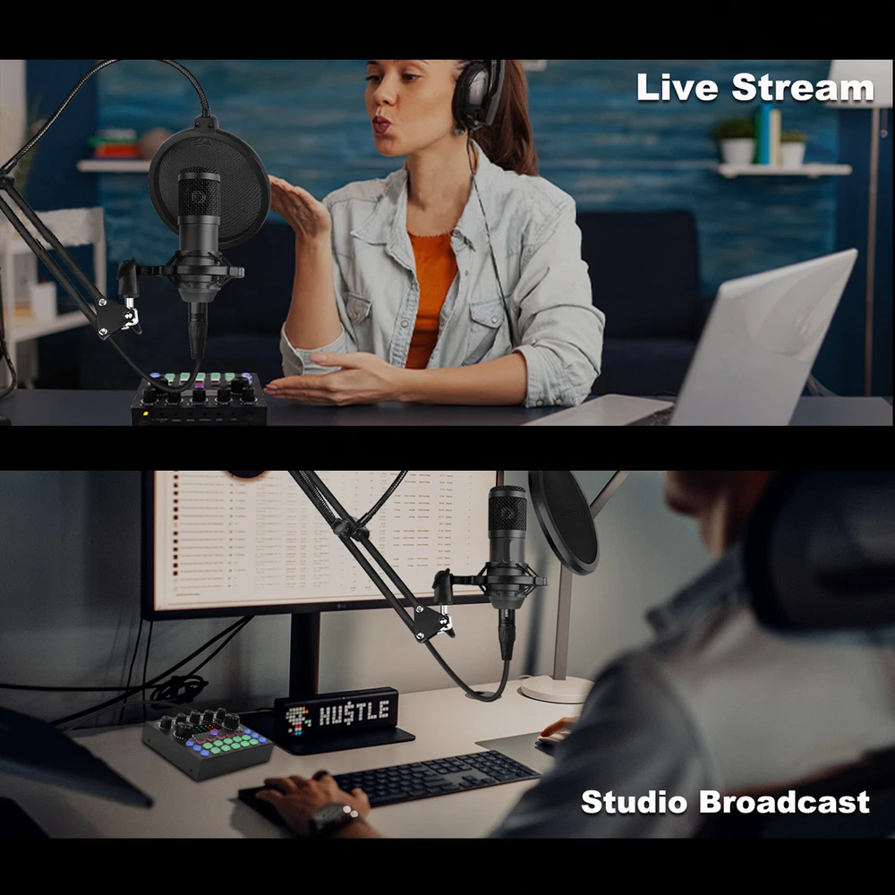 Welcome to NewBeeGoodsfeedback |contact us LocationUnited StatesHoursOpen 24/7SupportFeel free to Contact us ElectronicsMotors SuppliesHome & GardenPet SuppliesBusiness & Industrial NewbeegoodsUSD 58.89Podcast Equipment Bundle Recording Studio kit Audio Interface & All-in-One MixerDescription:The BM800 high-performance microphones are designed to deliver clear, high-quality sound for memorable recordings. It can deliver warm, clear bass, detailed midrange, and a silky high end. It is ideal for vocals, musical instruments, podcasting, voiceovers, interviews, field recordings. Suitable for studios, recording studios, broadcasting stations, personal broadcast, adage performance and computers. Specification:Material: Metal + PlasticColor: BlackPower supply (adapter): DC 5V/1A Battery: 3.7V / 800 mah (Battery life of approx. 5 hours with amplifier on)Power indicator (LED): Power on: white light; Charging: red light; Low battery status: Beep 2 minutes/timesCharging time: about 2 hours (power off) Sound card function: Yes Built-in battery: Yes Low Power Indication: Yes (Beep) Sound Adjustment: Yes Function keys: 5 Sound effect keys: 7 Special effects keys: 10 Connector Type: TYPE-CAccompaniment input: 1 way (3.5 port) Condenser Mic Input: 2 way (3.5 port) Headphone Output: 1 way (3.5 port) Live broadcast interface: 2 way (3.5 port) OTG interface: 1 way (TYPE-C port)Analog Audio Output: LT/RT, Stereo Dynamic Range 1kHz: ≧105dB Crosstalk: ≧-106dB Signal-to-Noise Ratio: ≧85dB Output Level(Vrms): Vrms(1.0~2.0V 10kR) Frequency Response: 5MHz( On Jun 22, 2024 at 06:25:38 PDT, seller added the following information: On Nov 29, 2024 at 06:11:28 PST, seller added the following information: