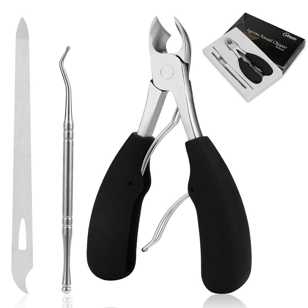 Store New Arrivals Add to Favorite View Feedback Podiatrist Toenail Clippers,Yinyin Professional Thick & Ingrown Toe Nail Clippers for Men & Seniors, Pedicure Clippers Toenail Cutters, Super Sharp Curved Blade Grooming Tool (Black) Description Item model number ORTCI Blade Edge Curved Color Black Brand YINYIN Material Stainless Steel, Alloy Steel, Acrylonitrile Butadiene Styrene Manufacturer YINYIN Package Dimensions 6.3 x 3.7 x 1.06 inches; 4.97 ounces Blade Material Stainless Steel 【Sharp & Durable】-YINYIN Podiatrist Toenail Clippers for thick nails for seniors use German-style cutting edge technology to easily cut thick and hard nails;These Ingrown Toenail Tools are professional tailoring tools manufactured to high standards,which are made of high quality medical grade stainless steel(4CR13)for rust and durability. 【New Curved Blade Design】- Toe nail clippers for men are scientific curved blade designed that more closely fits the shape of our ingrown nails or toenails.Easy to cut thick nails and ingrown nails without hurting the meat,perfectly reduce the pain caused by nail problems then walk comfortably. 【Upgraded Double Spring】 Upgraded no spring or single spring to double spring for long-lasting use. Extend toenail trimmer service life.The large ingrown toenail clipper with double springs allow seniors to have a relaxed pedicure experience and a longer lifespan of the toenail nipper. 【Updated Handle Nail Nipper】The ingrown toenail clipper handle is made with ABS material that is non-slip and softer, the updated handle keep the toe nail clippers lighter and easier to operate; 【High-value Nail Clippers Set】We have an exquisite carton package that can be given to the elders as a gift. This set of high-value ingrown toenail tool also includes a nail file and ingrown toenail lifter, which can work with us to solve our nail problems perfectly. Product Description As a reliable seller, YINYIN always provides high-quality services for everyone.YINYIN nail clippers for thick nails for seniors are made of high-quality materials,The newly upgraded toenail clippers for men are sharper and safer. We also come with double-sided nail file and ingrown toenail lifter, which can work with us to solve our nail problems perfectly. Color: Black soft handle Material: stainless steel Package includes: 1*Fingernail and Toenail Clippers 1*nail file 1*ingrown toenail lifter 1*exquisite carton package YINYIN professional toenail clippers for seniors, perfect in every detail, can help you perfectly handle your daily nail cutting needs,Now,Let's meet again the YINYIN ingrown toenail clippers : Scientific Arc Blade:We reformed the traditionally too sharp knife edge and designed a more scientific and reasonable arc blade to easily cut off nails without hurting our skin. Sharp Knife Edge:This time we use German blade cutting technology, three blade cutting technology treatment, selected high-quality special steel, adhering to the German craftsman tradition, the blade is sharp, you can better penetrate the nail ditch, cut nails cleanly and thoroughly. Stainless Steel:Premium stainless steel is durable and easy to clean and maintain after use,durable and non-rusting. 1. High quality nail file: Our double-sided nail file made of durable stainless steel has a finer texture, faster nail file, and better finish the last step after manicure our toenail.The double-sided design is more practical and is an indispensable Manicure tool. 2. Ingrown Toenail Lifter: Lift ingrown part away from the skin. Not only a lifter, also an amazing nail cleaner. With little spoons on it curved end’s that make it gets under even the closest toe nail to grab even the smallest bits of debris. As a Gift: It comes with a beautiful box to store the ingrown nail clippers for men. We can beautifully pack our boxes of clippers as gifts for family, friends, and elders. ABOUT US We offer the best prices around on high quality products. Our E-store includes media such as books, movies, music and games while offering electronics, toys, sporting apparel, clothing, tools, general home, garden items and more. SHIPPING We are always working hard to ensure your package arrives as soon as possible. Please understand that some factors like weather, high postal traffic, and the performance of shipping companies are outside of our control. We offer free shipping to the lower 48 states and ship within 2 business days of payment, usually sooner. We do not accept P.O. Boxes. Please provide a physical address. RETURNS We offer a 30-Day Return Policy on items which you are not completely satisfied with. You have the option for a full-refund or an exchange of the item. No returns are available on items shipped outside of the USA. PAYMENT We accept PayPal. CONTACT US This page content is yet to come Please ad us to your favorite seller and visit again later Thank You