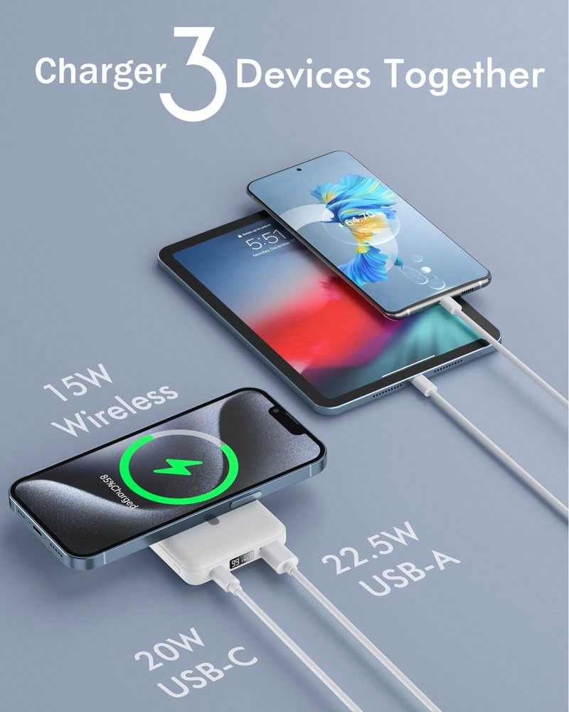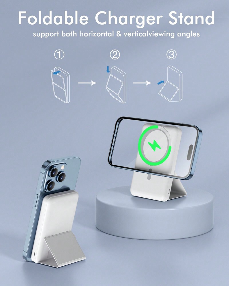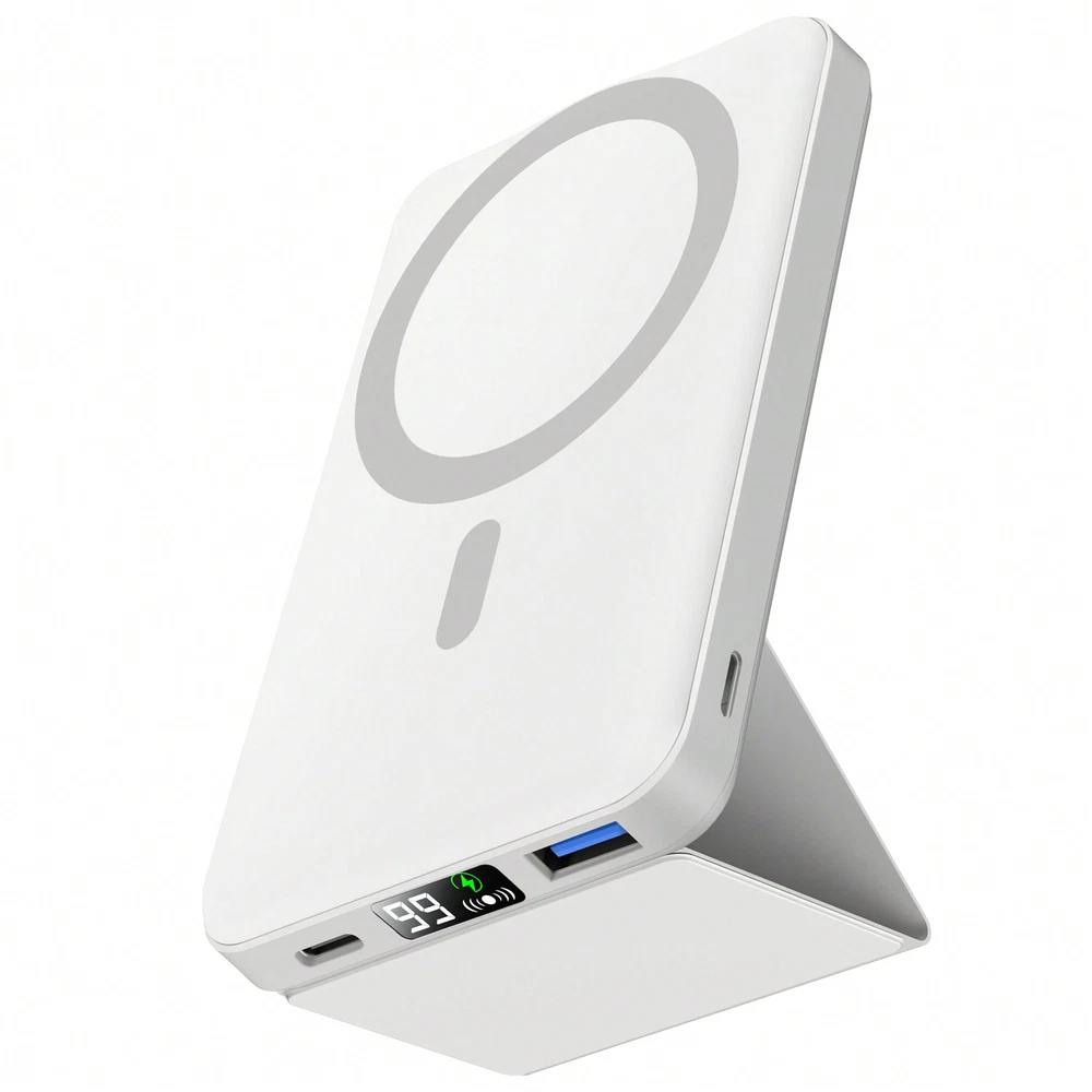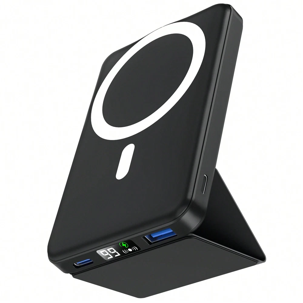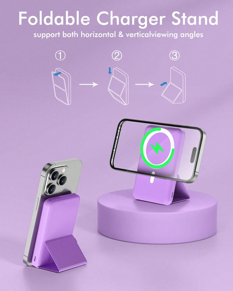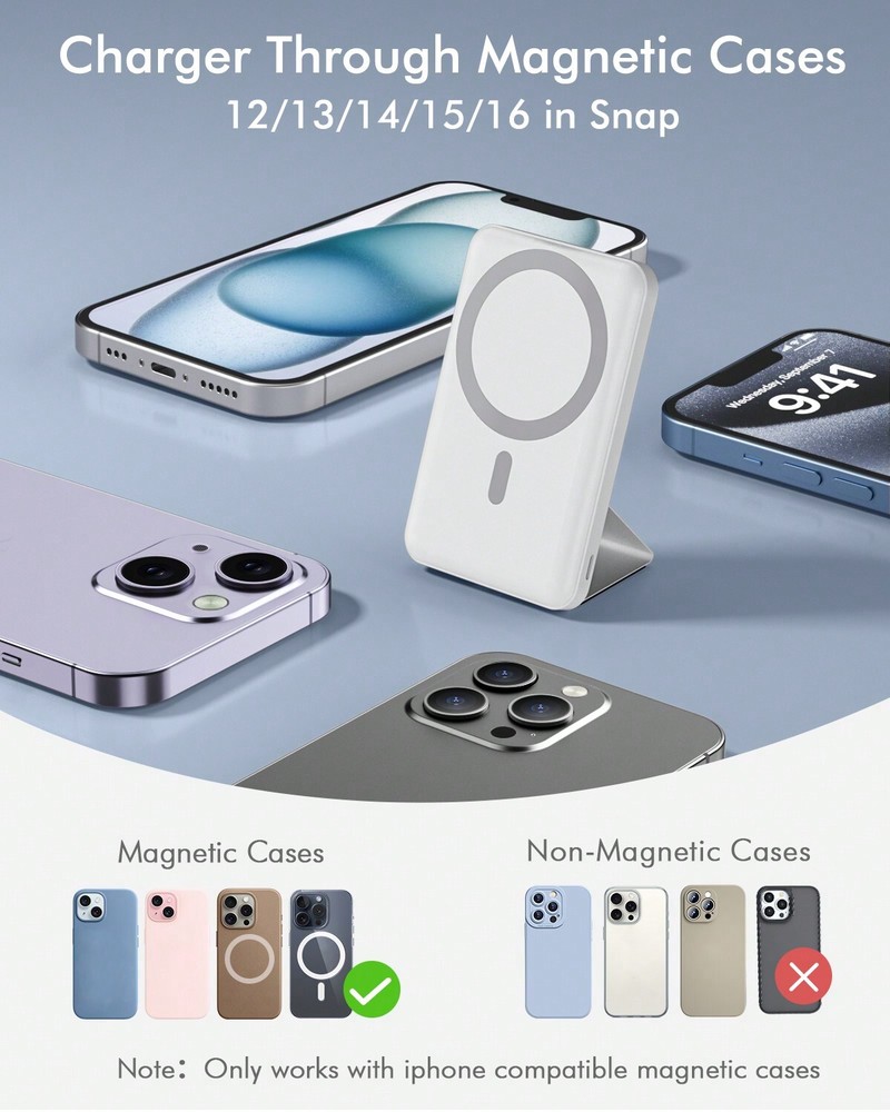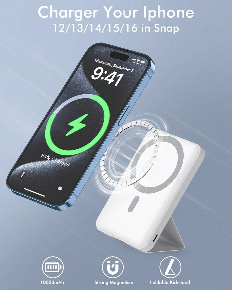"Great Compatibility Power Bank: This iphone portable charger is perfectly designed for iPhone 16, iPhone 16 Plus, iPhone 16 Pro, iPhone 16 Pro Max, iPhone 16, iPhone 15 Plus, iPhone 15 Pro, iPhone 15 Pro Max, iPhone 14, iPhone 14 Plus, iPhone 14 Pro, iPhone 14 Pro Max, iPhone 13, iPhone 13 mini, iPhone 13 Pro, iPhone 13 Pro Max, iPhone 12, iPhone 12 mini, iPhone 12 Pro, and iPhone 12 Pro Max. Does not block the camera lens Charging with Magnetic Phone Case: We recommend charging with MagSafe phone case or without cases to get enough suction(Using a non-magnetic phone case will cause the phone to not adsorb properly) 10000mAh Large Capacity Magnetic Wireless Charger: Wireless power bank equipped with 10000mAh Large capacity and high density battery design can provide all-day power. Large capacity of the magnetic power bank is great travel companion for you. The wireless charger iphone can charge 2 times for iPhone 16/15/14/13/12 Pro, about 1.5 times for iPhone 16/15/14/13/12 Pro Max & 16/15/14/13/12 Plus Multifunctional built-in foldable stand: Portable power bank features a foldable stand to hold your iPhone (horizontally or vertically); let you no longer worry about the charging distance; The built in stand of the magnetic portable charger for iphone is sturdy enough to hold your phone. You can free your hands to watch videos or make video calls with friends Strong Magnetic & Digital Display: Podoru portable charger iphone with the newest magnetic technology (stronger magnetic and nano adsorption), Super magnetic adsorption on the back of your iPhone. This battery pack for iphone has a Built-in smart LED digital display allows you to clearly see the exact remaining power, no need to worry about low power 3 Devices Fast Wireless and Wired Charging: Our wireless portable charger support 5W, 7.5W, 10W and 15W Max wireless charging, 22.5W max USB-A PD output and max 20W USB-C output; support max 18W Lighting input and max 18w USB-C input. Portable phone charger Support 3 devices charging at the same time, charging together, no waiting. And the portable charger power bank case is made of silicone to avoid damaging your phone Lightweight Design for Portability: Our magnetic charger for iphone weighing only 0.41lb(104*68*21mm). Portable iphone charger mini design allows you to put the in your pocket or backpack easily, perfect for travel, vacation and camping, and It is allowed to be taken on the plane Superior Safety: This power bank for iphone has 10000mAh high-density lithium polymer battery, and 8 built-in low-temperature ice cores. Automatically adjust the output to provide the most suitable current, protect your equipment from overcharge, overcurrent, overvoltage, short circuit and multiple safety protection systems. Can prevent overheating and high temperature effects, proactively avoid a series of potential dangers. Once you have this wireless charger, you can use it with confidence Specific Information Q: Which mobile phone models is this mag-safe powerbank compatible with? A: This magnetic power bank compatible with: iPhone 16 / iPhone 16 Plus / iPhone 16 Pro / Phone 16 Pro max /iPhone 15 / iPhone 15 Plus / iPhone 15 Pro / Phone 15 Pro max /iPhone 14 / iPhone 14 Plus / iPhone 14 Pro / iPhone 14 Pro max / iPhone 13 / iPhone 13 mini / iPhone 13 Pro / iPhone 13 Pro Max, iPhone 12 /iPhone 12 mini / iPhone 12 Pro / iPhone 12 Pro Max. Q: Can my phone be charged magnetically with a case? A: This mag-safe battery pack only magnetic phone cases can be used for wireless magnetic charging and are NOT compatible with non-magnetic cases, such as the OtterBox Defender case. Q: Is it normal for the mini powerbank to heat up when charging? A: This magnetic battery pack has eight built-in cryogenic ice cores with some cooling effect. However, the portable charger may generate some heat due to energy loss during transmission. This is a normal phenomenon. Q: Is the stand on this magnetic charger stable? A: The improved and modified powerbank stand is made of a more resistant material and the recesses in the stand have been deepened so that the magnetic portable charger stands securely without the risk of collapsing. Q: Magnetic wireless power bank charging will be affected by external factors to interfere with the magnetic? A: Magnetic and metal attachments such as cards, keys, and pop grips will interfere wireless battery pack with charging."