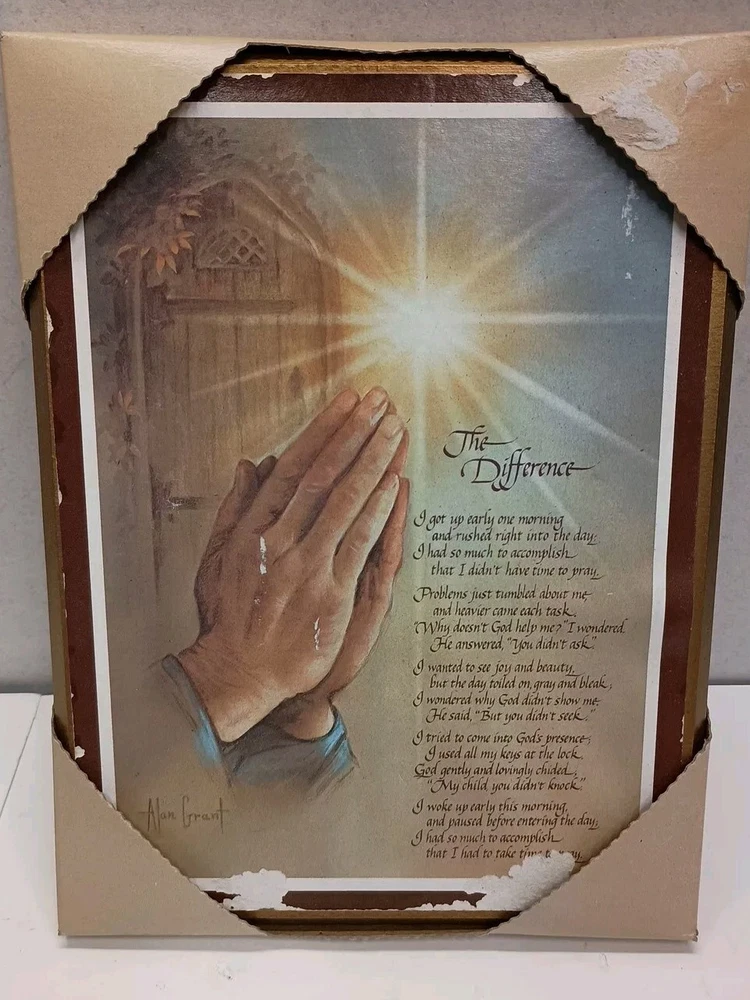 Poem “The Difference” By Alan Grant On Wood Wall Plaque Sealed Praying Hands