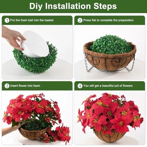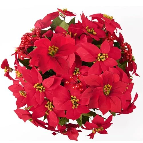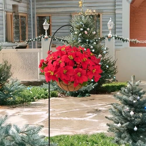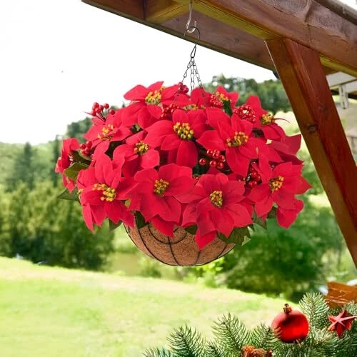 Poinsettia Artificial Fake Christmas Hanging Flowers Plants Basket for Red-m