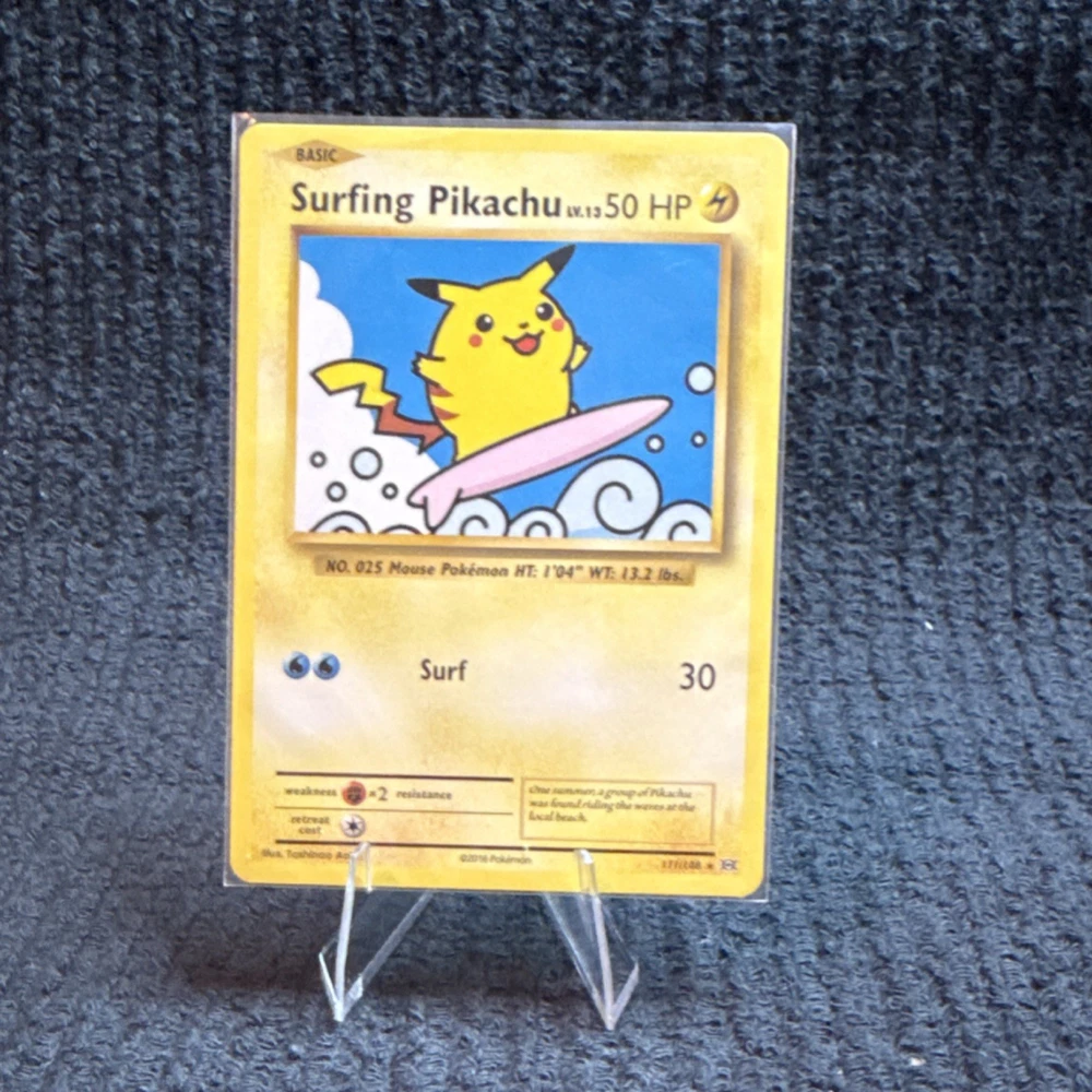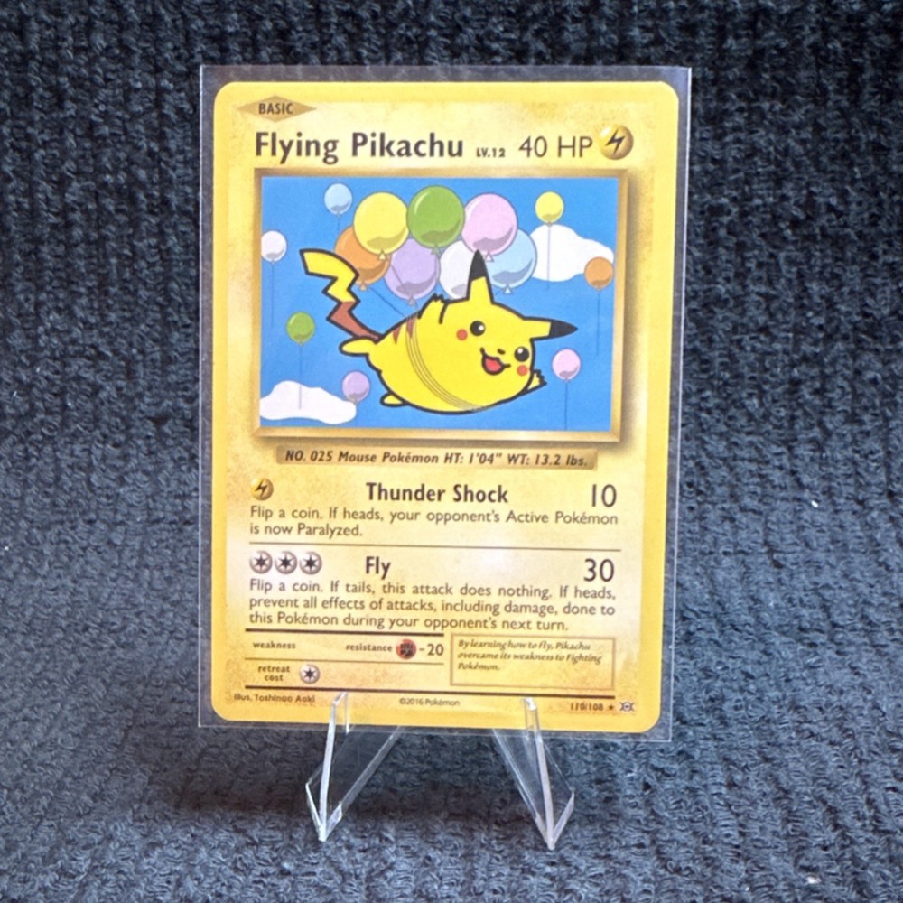 Manufacturer:NintendoSet:2016Finish:RegularCard Name:Flying Pikachu, Surfing Pikachu, Imakuni?'s Doduo, Exeggutor, Here Comes Team Rocket!Attribute/MTG:Color:Lightning, Colorless, GrassIllustrator:Toshinao Aoki, Dr. Ooyama, Ken SugimoriNumber of Cards:5Card Condition:Lightly Played (Excellent)Material:Card StockLanguage:EnglishGame:Pokémon TCGCard Size:StandardYear Manufactured:2016Features:Unique ArtCharacter:Pikachu, Doduo, Exeggutor, Team RocketAge Level:6+Card Number:111/108, 112/108, 113/108, 109/108, 110/108Card Type:Pokémon, Trainer-ItemCountry of Origin:United States