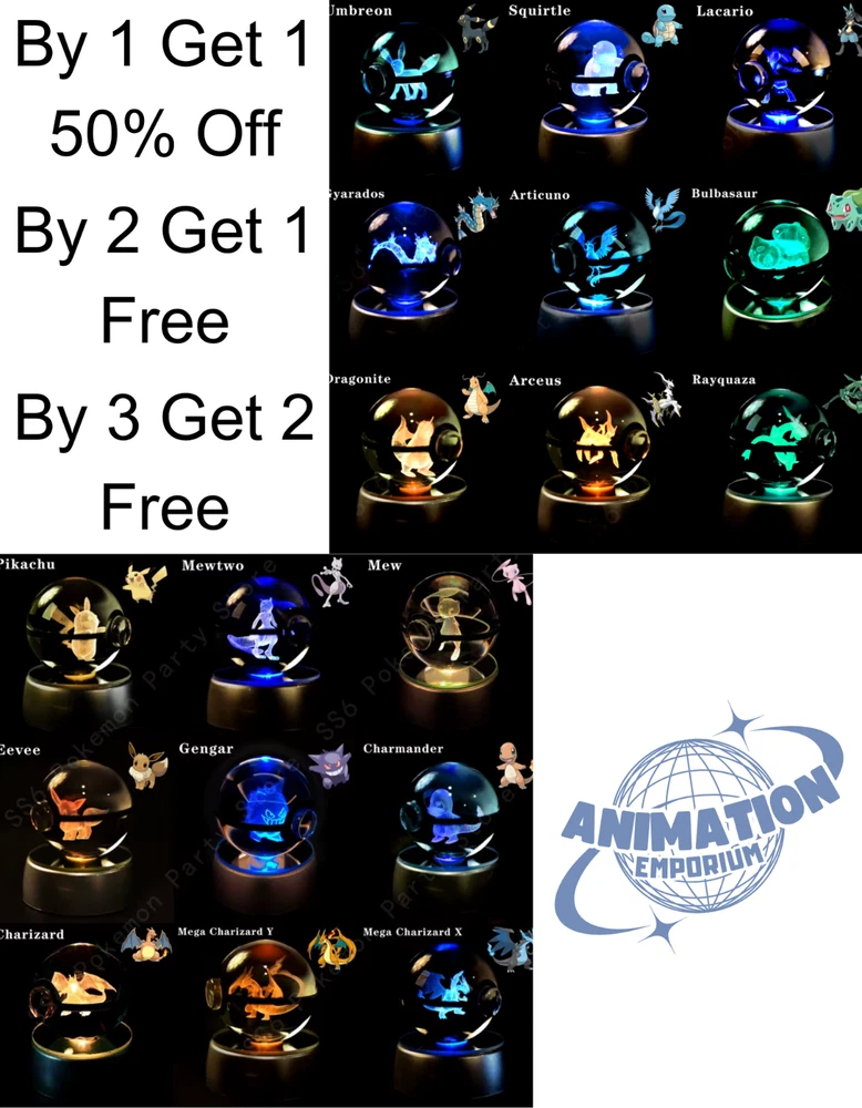 Pokémon | 34 Different Pokemon in 3D Crystal Pokeballs | LED Light Base