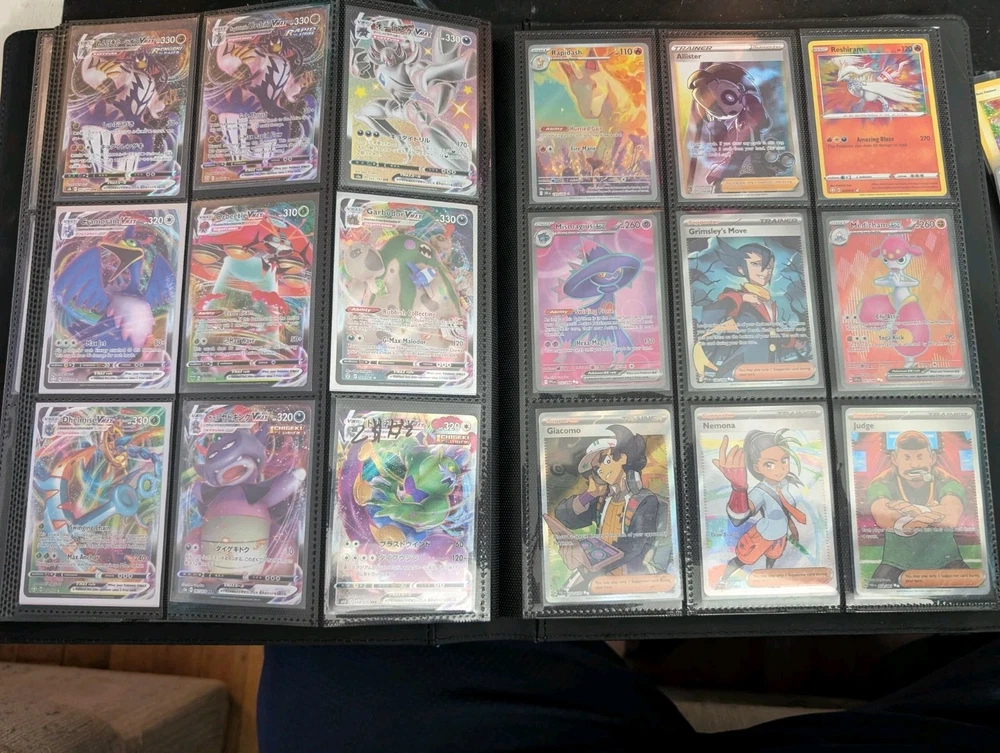 Cards ranging from base set- current (1999-2026) this is a trade binder for me. Vintage cards range from NM-HP all current sets 2016-2026 all cards are near mint. Cards range from 1st Ed, Holo, non Holo rare, promos - one or 2 sealed, vmax's, Ex's, celebrations, energies, baby shinies, cosmos Holo, full arts, illustration, rainbow, gold,gx, 151, trainers, art rares, and Topps. You are taking the entire lot! All 291 cards! English/Japanese/a couple Korean. I will send the entire binder. This is years worth of collecting, great for any collector or anyone just starting out. Every type of pokemon, every type of card! Enjoy!