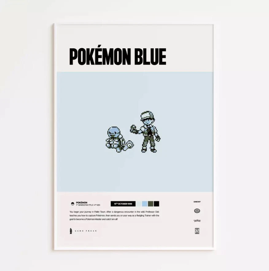 Pokémon Blue (1996) Video Game Art Poster / Print