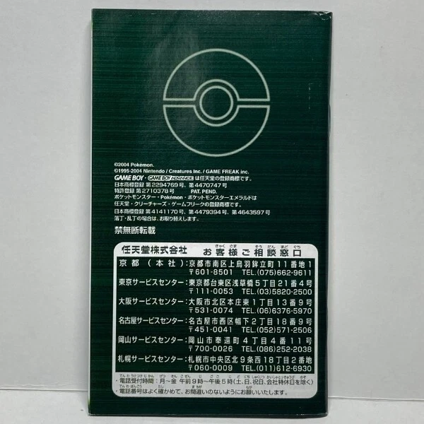 Pokémon Emerald (Rayquaza Version) - Game Boy Advance - Complete w/map Japanese From Japan Description Thank you for your visiting my store. Experience the thrilling adventures of the Pokémon world with this complete set of Pokémon Emerald (Rayquaza Version) for Nintendo Game Boy Advance. This game offers an exciting combination of battle and role-playing gameplay, allowing you to embark on an epic journey to become a Pokémon master. With its rare features, manual included, map included, joy spot instructions manual, and retro design, this game is a must-have for collectors and Pokémon fans alike. The set comes boxed and with promotional leaflets from the time of release, making it a great addition to any collection. Don't miss out on the chance to own this classic game and relive the excitement of catching 'em all! If you have any questions about the condition, please ask me. Shipping Economy Shipping(Japan post) The package will arrive 2~3weeks after shipment . Expedited Shipping (Fedex,DHL) The package will arrive 4~7 days after shipment. I nternational Buyers - Please Note: Import duties, taxes, and charges are not included in the item price or shipping cost. These charges are the buyer's responsibility. Please check with your country's customs office to determine what these additional costs will be prior to bidding or buying. If the cancellation is due to the buyer, we will charge a PayPal fee. If there is a remote charge for your address, we will charge you for additional shipping. Thank you for your understanding. kyotoxxiv is registered store in Kyoto,Japan. We deal in japanese items;retro games, trading card games and others.
