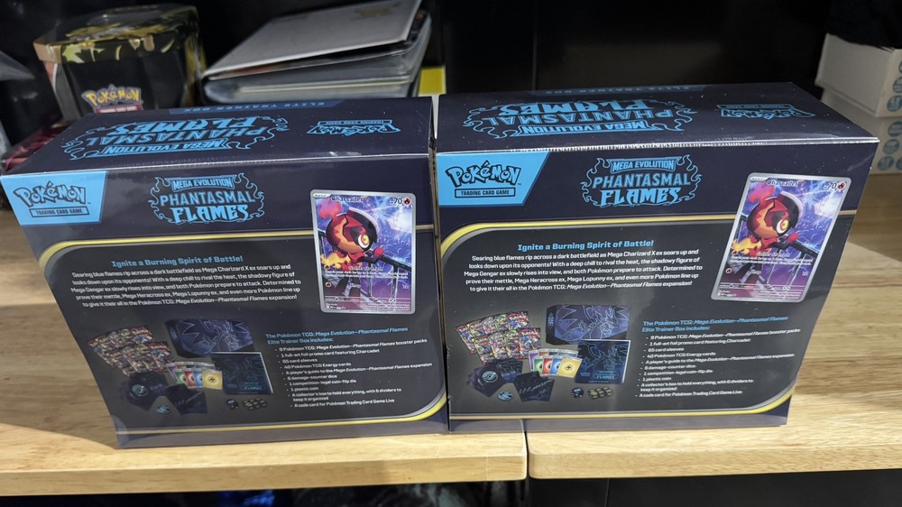 The Pokémon Phantasmal Flames Elite Trainer Box (ETB) contains a special set of Pokémon Trading Card Game cards from the Phantom Flame series. This branded product is sealed and includes promo cards, making it a highly sought-after collectible for Pokémon TCG enthusiasts. Manufactured by MEGA, this English-language box offers a unique booster pack experience for fans of the Pokémon TCG game. Factory sealed. 2 ETB total. Will ship in premium packaging to make sure of safe delivery. Thank you
