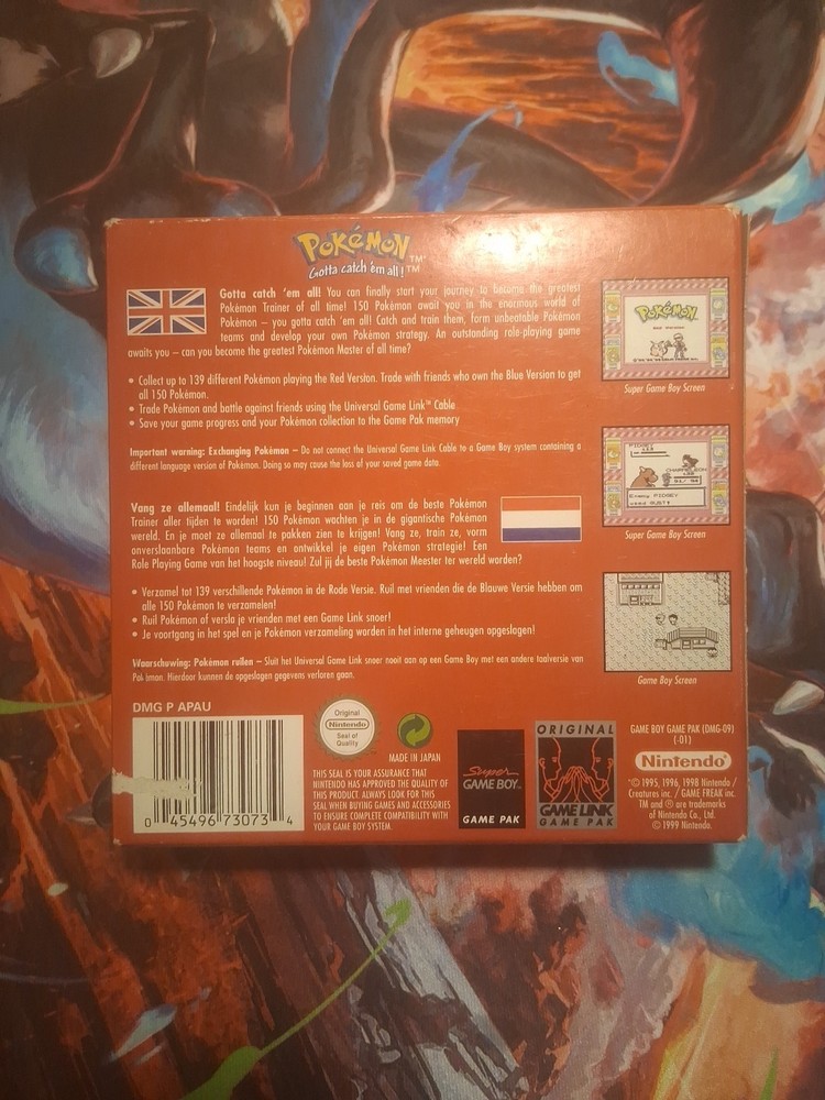 This Pokémon: Red Version for the Nintendo Game Boy, released in 1998, is the authentic CIB (complete in box) version with a new battery and is a first print. This action and adventure game, part of the popular Pokémon series, is rated E for Everyone and includes the manual. With its classic gameplay and iconic characters, Pokémon: Red Version is a beloved title among gamers and collectors alike. Tested, works great, and is a perfect Christmas present! Purchase comes with some randomly selected Pokémon cards as well!