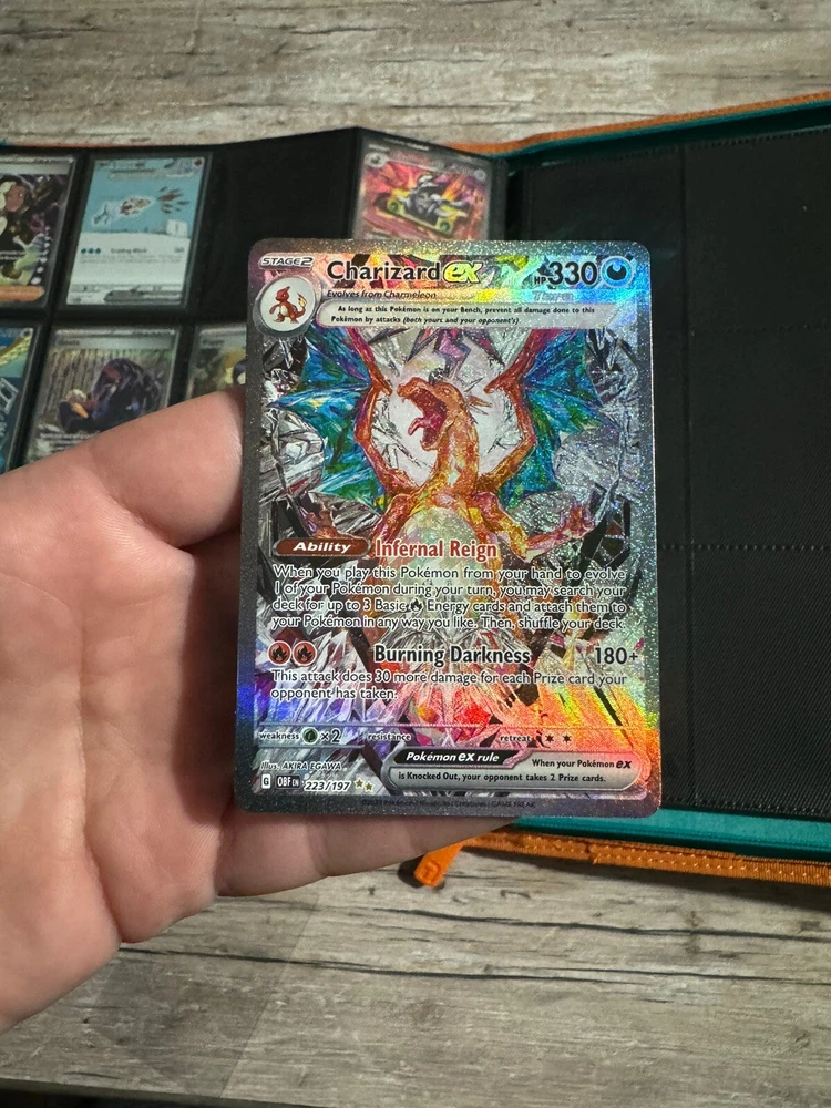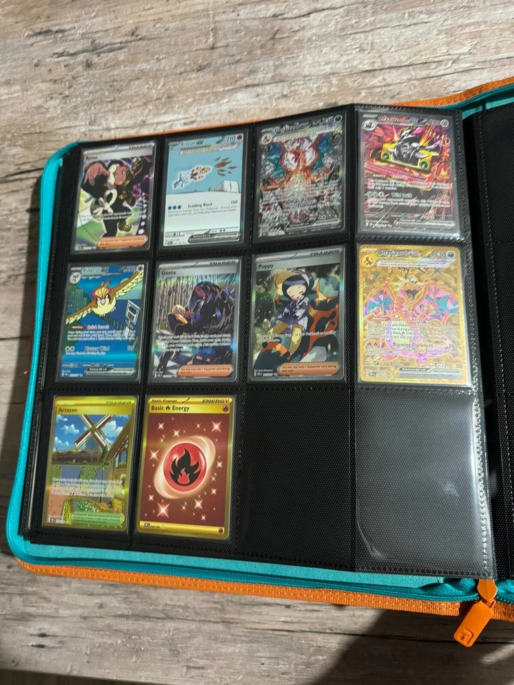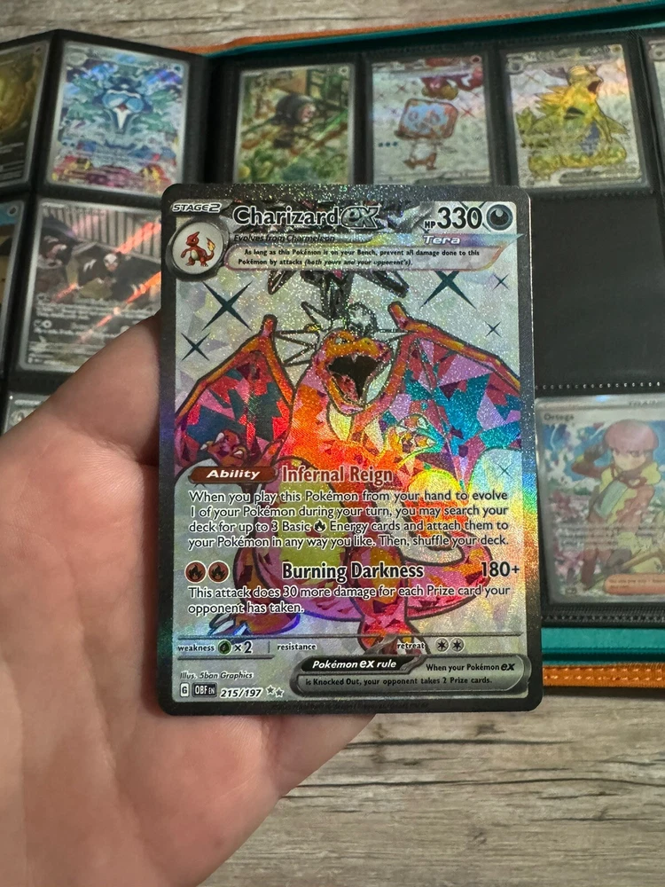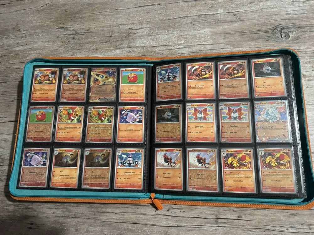 This is a 100% complete adult owned NM mint master set of obsidian flames ! All cards are in excellent condition and are in sleeves . This set has all the reverse Holo version as well as the non Holo version ! It’s all in the custom vault binder made for this set ! By far the best master set I have seen listed. Thanks and be sure to check my other listings for more !