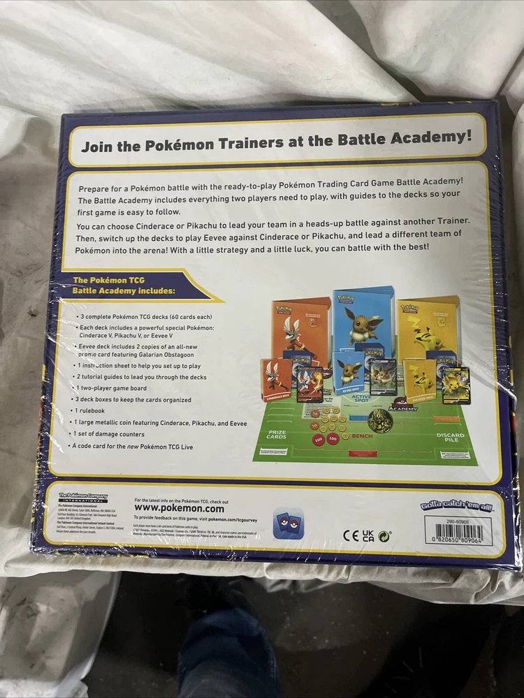 This Pokémon TCG Battle Academy box is factory sealed and ready for you to open. The set includes standard-sized cards made of high-quality card stock material. The box features English language cards and is configured for one box. The set is perfect for collectors and players of all ages, with a 6+ age level recommendation. The Pokémon League convention/event and United States country/region of manufacture add to the uniqueness of this item. Get ready to battle with this Pokémon TCG set, perfect for anyone who loves the game.